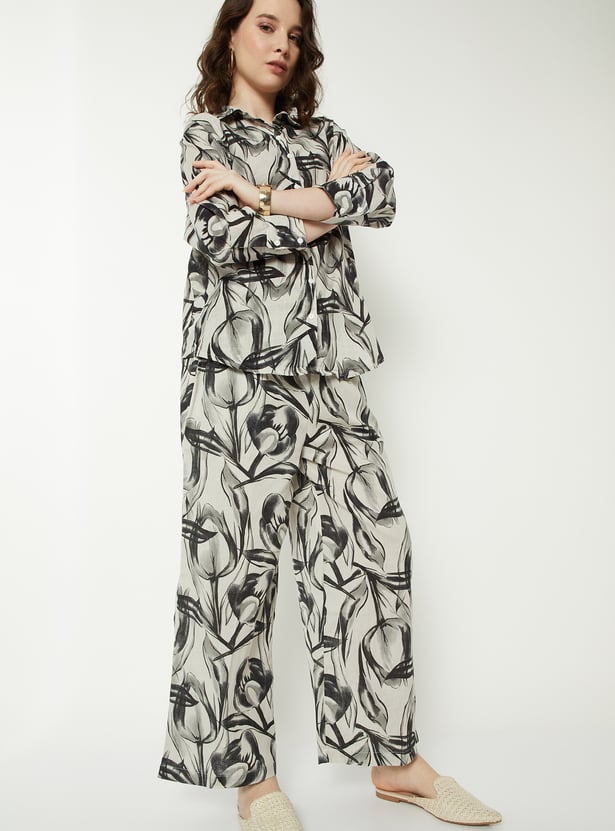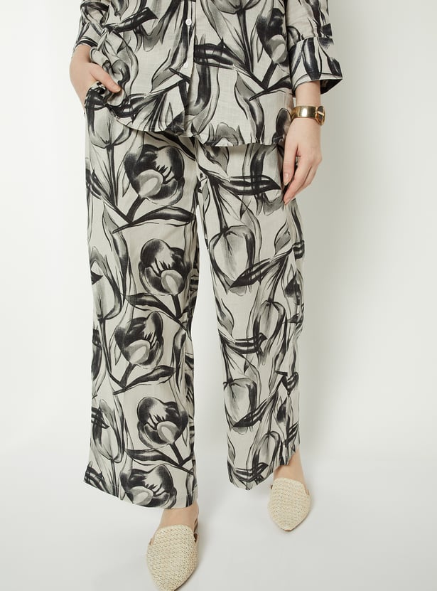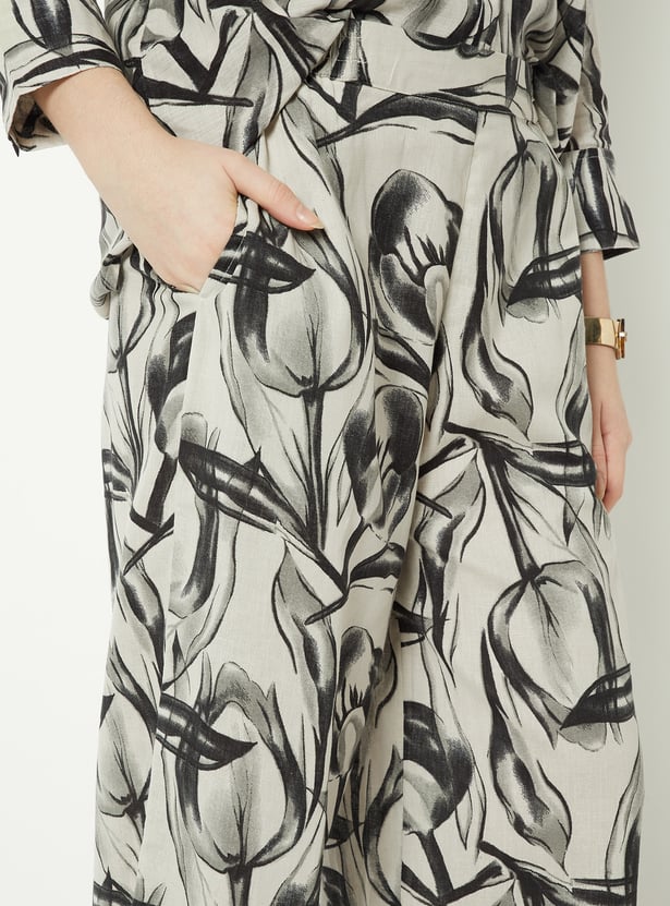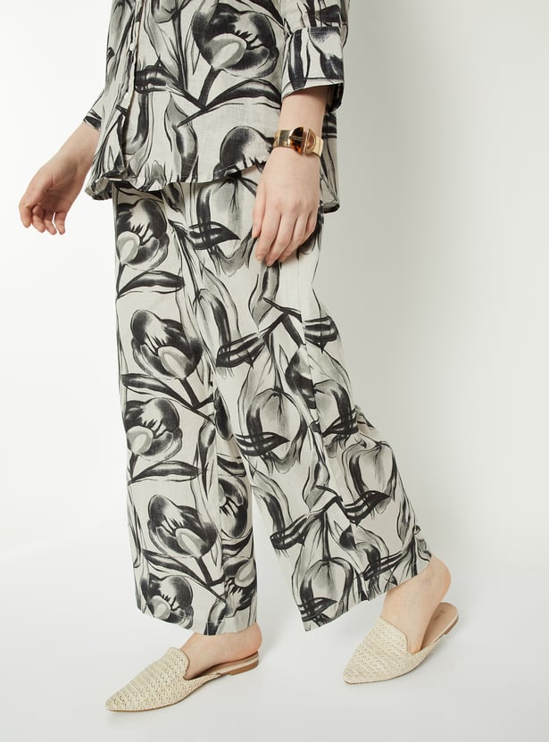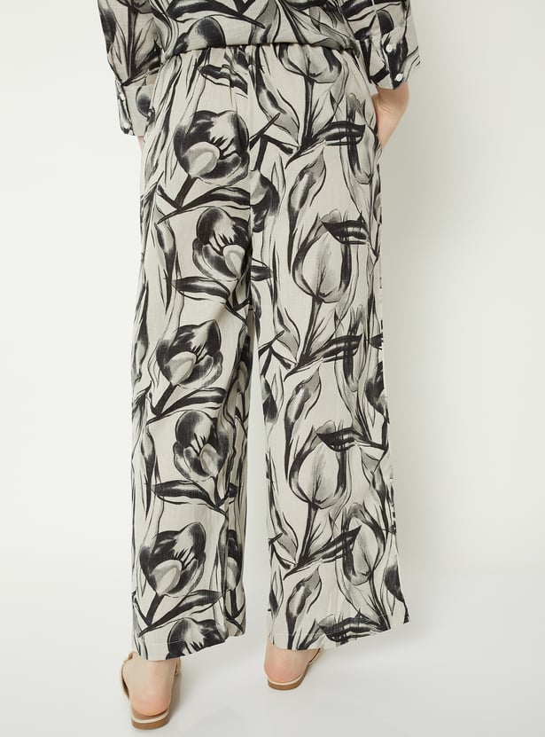 Bring a breezy vibe to your look with these printed palazzos. Adorned with bold floral prints, they feature a drawstring waist for a comfortable fit. Side pockets add everyday practicality to the wide-leg silhouette.