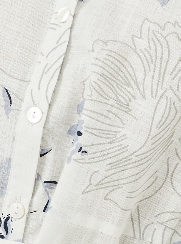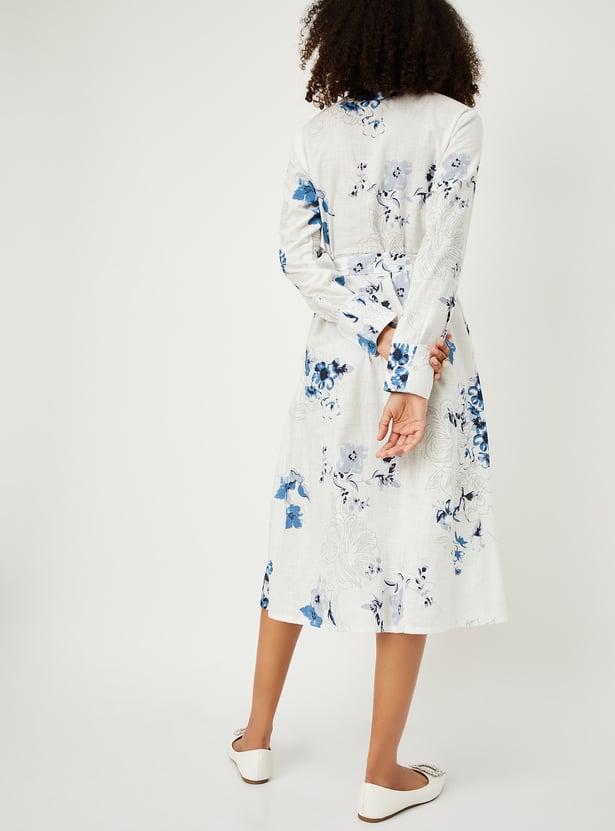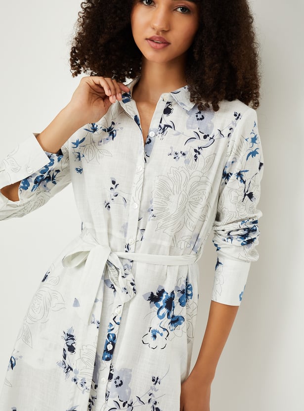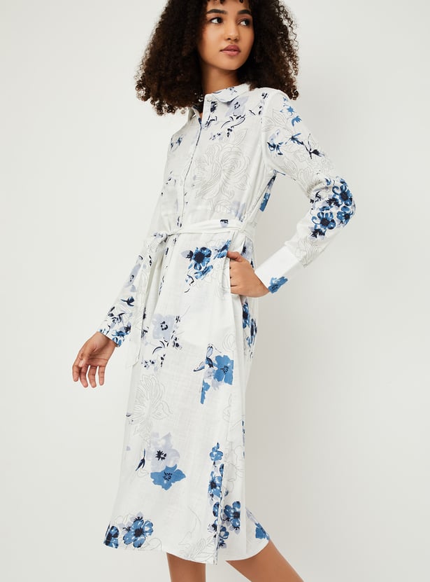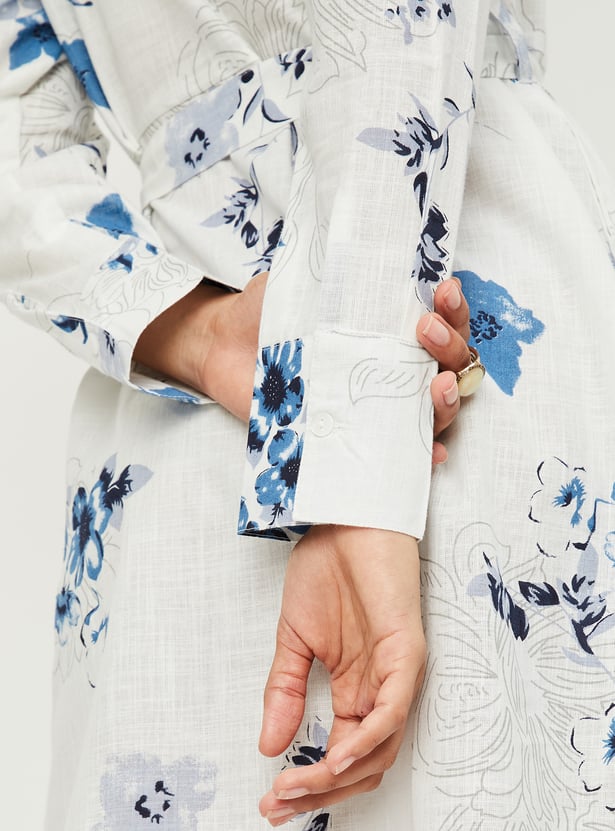 Embrace fresh, feminine style with this floral print shirt dress. With its spread collar, button placket, and full sleeves with button cuffs, this dress effortlessly blends classic and contemporary elements.