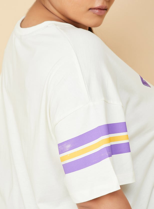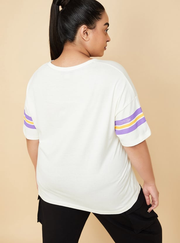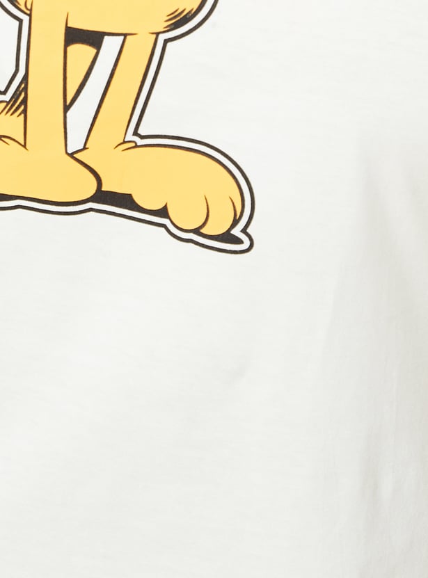 Get that relaxed yet stylish look with this T-shirt. Featuring a Garfield print, round neckline, and half sleeves.