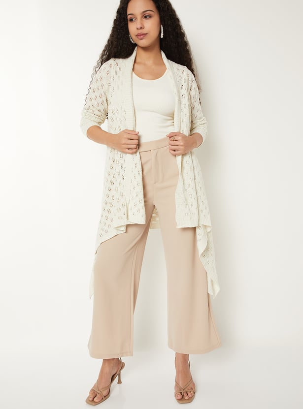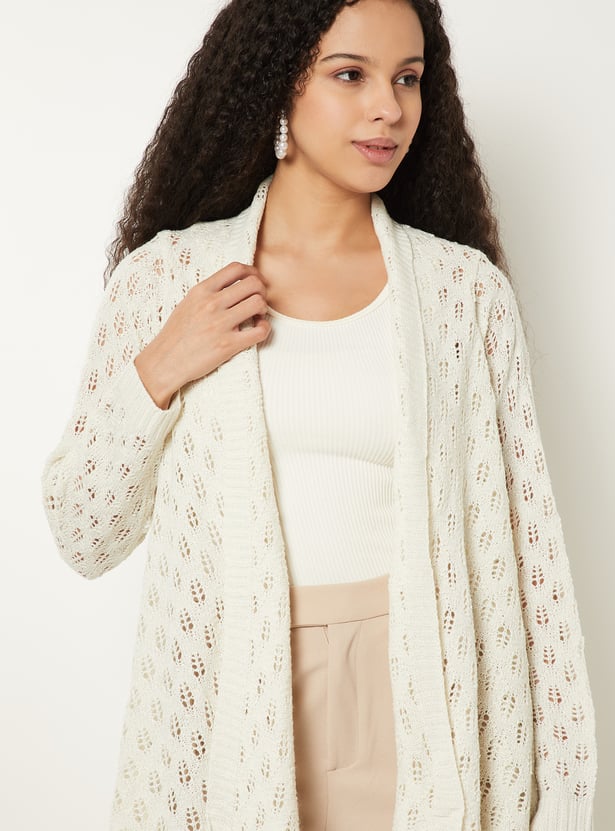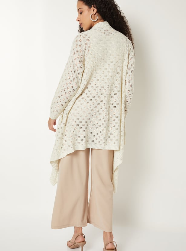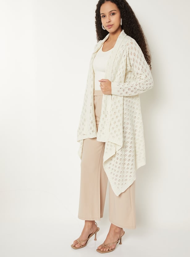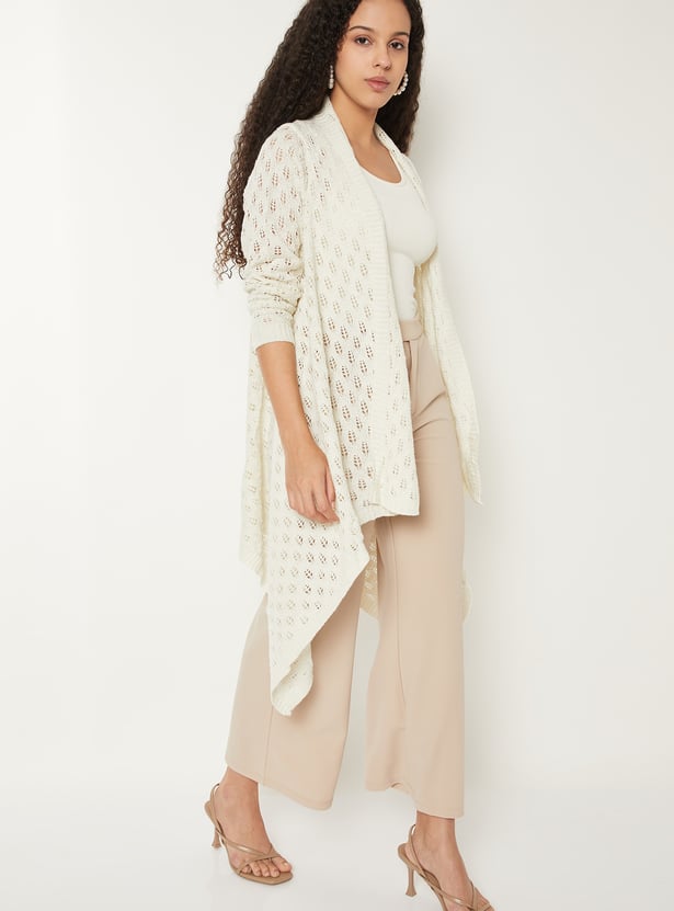 Add effortless layering to your look with this knit longline waterfall shrug, featuring an open front, full sleeves, and a chic asymmetric hem. Its relaxed silhouette makes it the perfect throw-on piece for versatile styling.