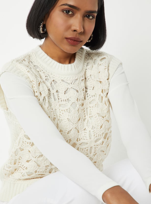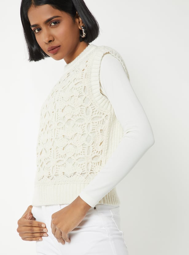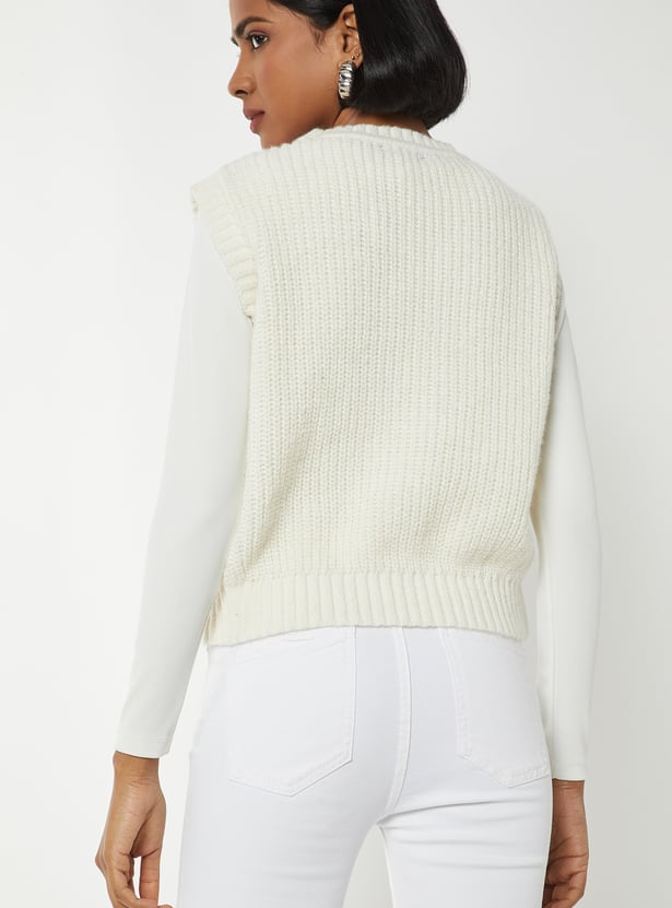 Step out in layered style with this knit sweater vest, featuring a crew neck and sleeveless design for a versatile fit. Perfect for adding a cozy yet chic touch to any outfit.