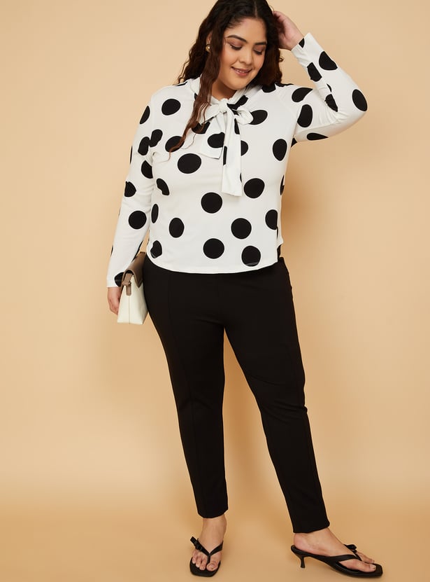 This polka dot blouse adds a touch of vintage charm to your wardrobe. It features a tie-up neckline and full sleeves, creating an effortlessly feminine and elegant silhouette. Model Size :