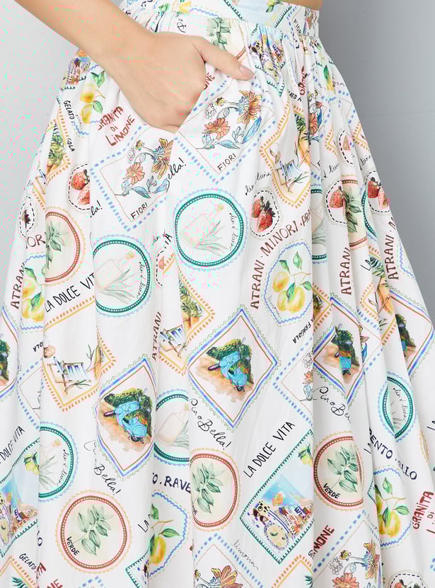 Women Printed A-Line Midi Skirt