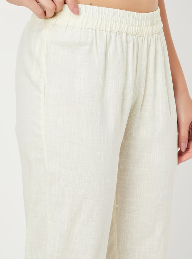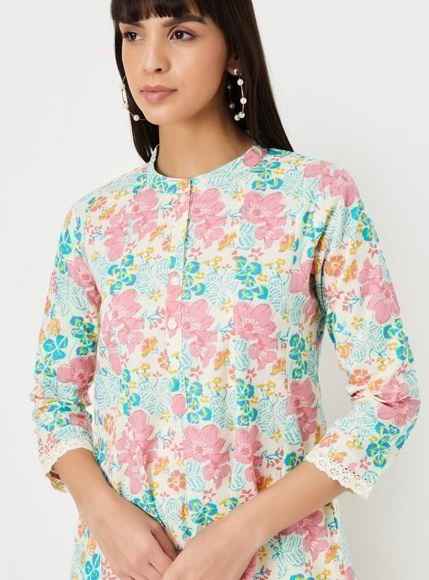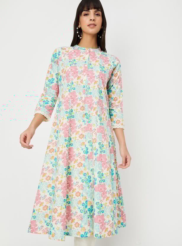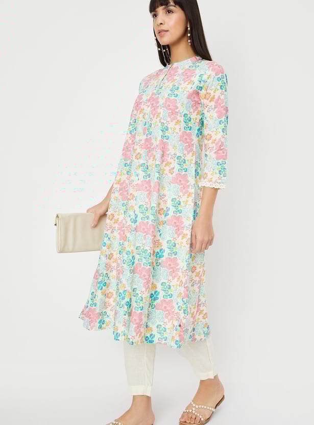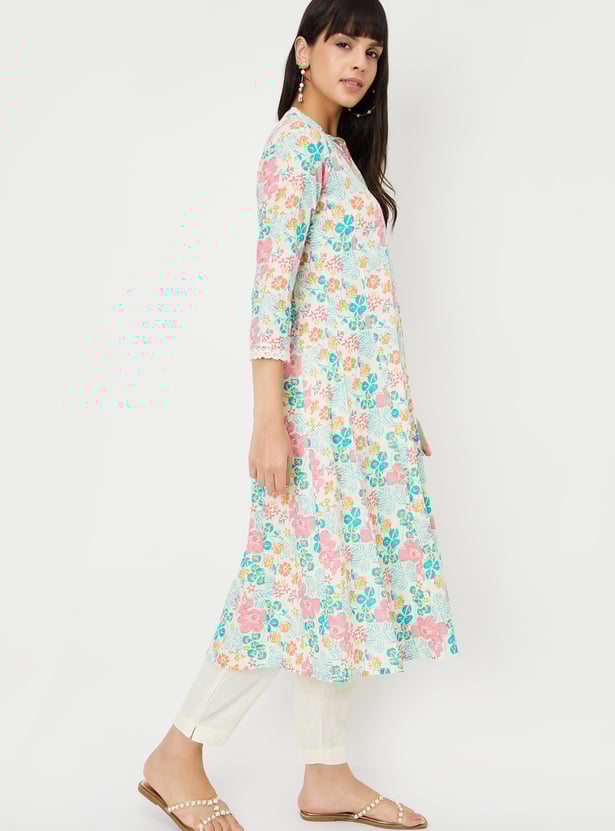 Step into elegance with this printed A-line kurta set. The kurta features a stylish band collar, 3/4th sleeves, and a flattering A-line silhouette, while the solid straight pants complete the look with a touch of sophistication.