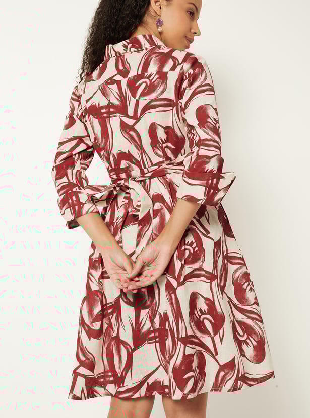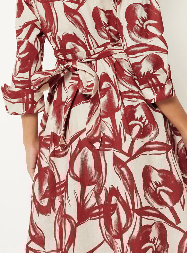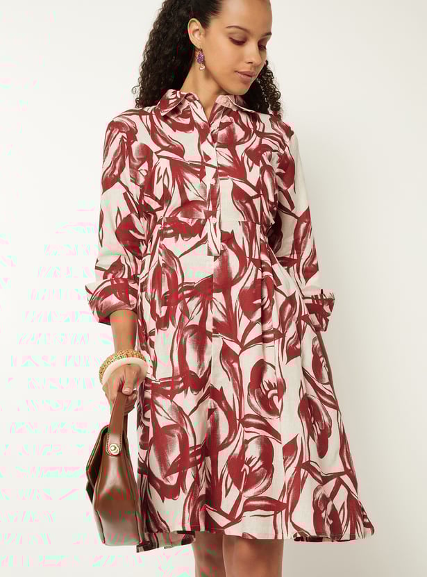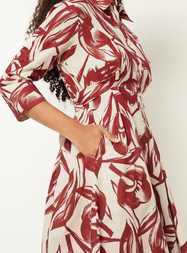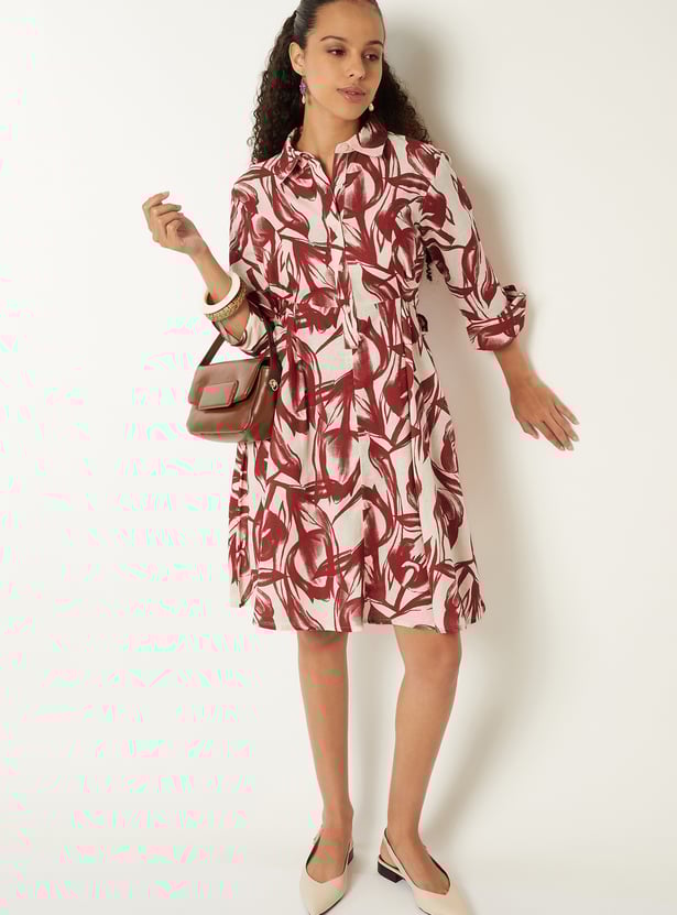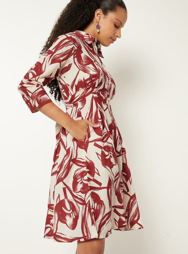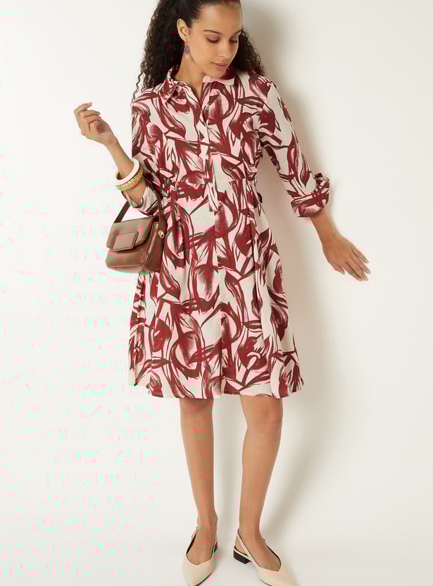 Effortlessly chic and versatile – this printed shirt dress features a spread collar, three-quarter sleeves, practical pockets, and a neat button placket. The printed design adds a touch of charm, while the shirt-dress silhouette makes it perfect for both casual outings and semi-formal occasions.