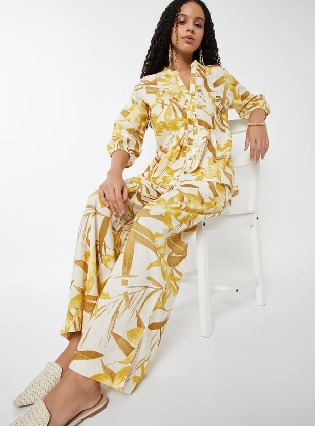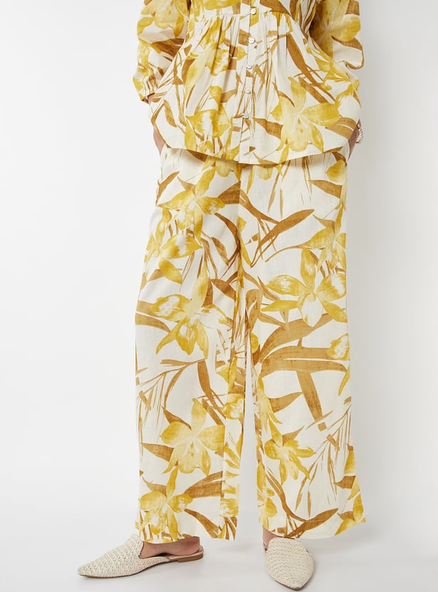 Make comfort look chic with these printed wide leg palazzos, featuring a drawstring closure and functional pockets. The breezy silhouette is perfect for easygoing, all-day wear.