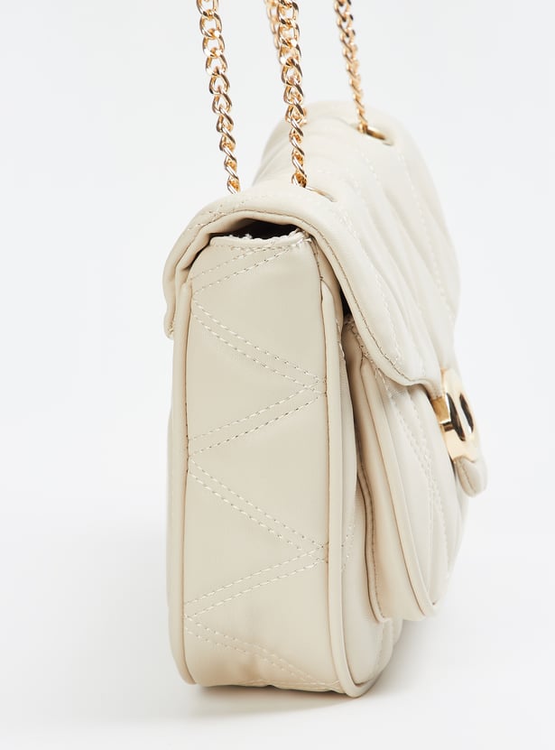 Elevate your everyday style with this chic shoulder bag that blends elegance with practicality. Designed with a quilted design, a flap and a magnetic button closure, it features a convertible chain strap, a front pocket, and one main compartment with an inner zip pocket for organised storage.