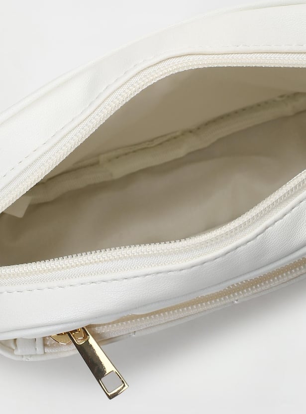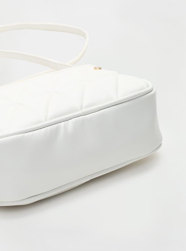 A stylish addition to your regular outfit is this quilted sling bag. The main compartment features a zipper and a side pocket along with a sling strap.