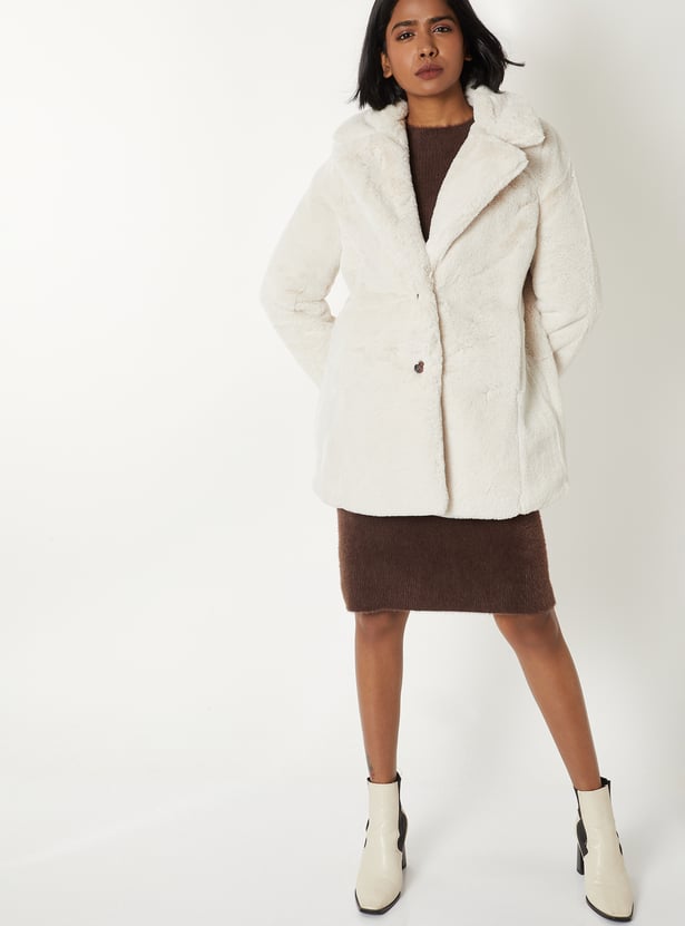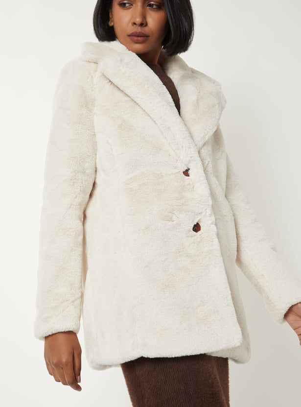 Women Solid Faux Fur Jacket