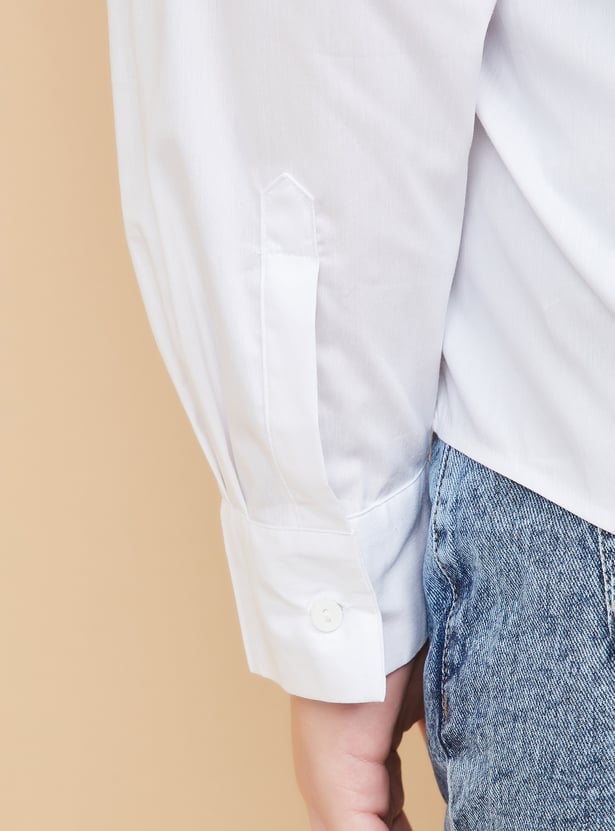 Add a classic touch to your wardrobe with this solid regular fit shirt. It features a spread collar, button placket, and full sleeves with button cuffs, offering a sharp and polished look. Ideal for both casual and semi-formal occasions. Model Size :