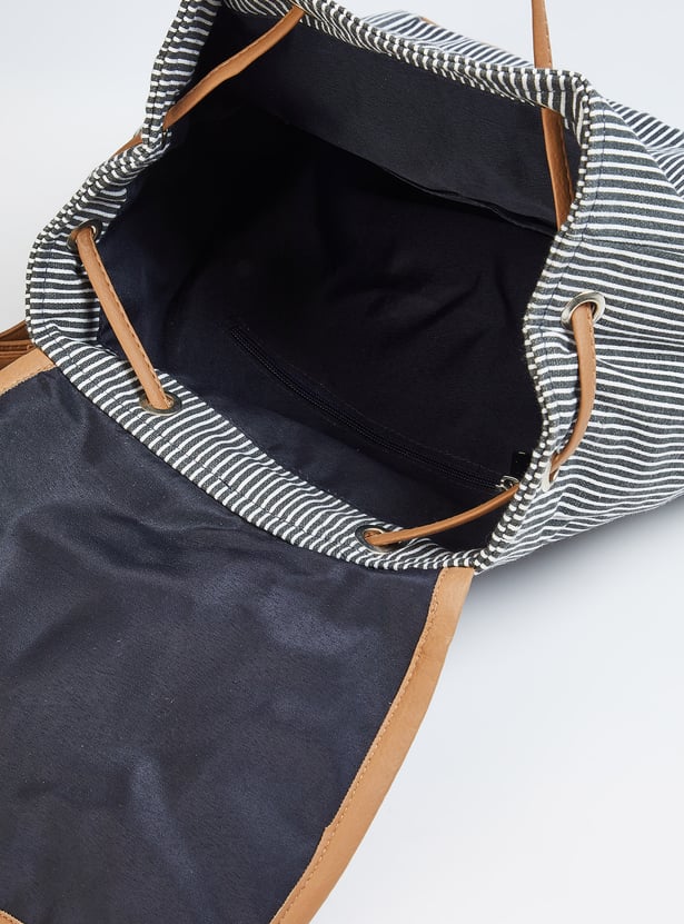 A stylish add-on for your everyday look, a backpack with trendy stripes, and a modern look. It is finished finely with a drawstring closure, spacious compartment, zip pocket, shoulder straps, and a comfortable holding strap.
