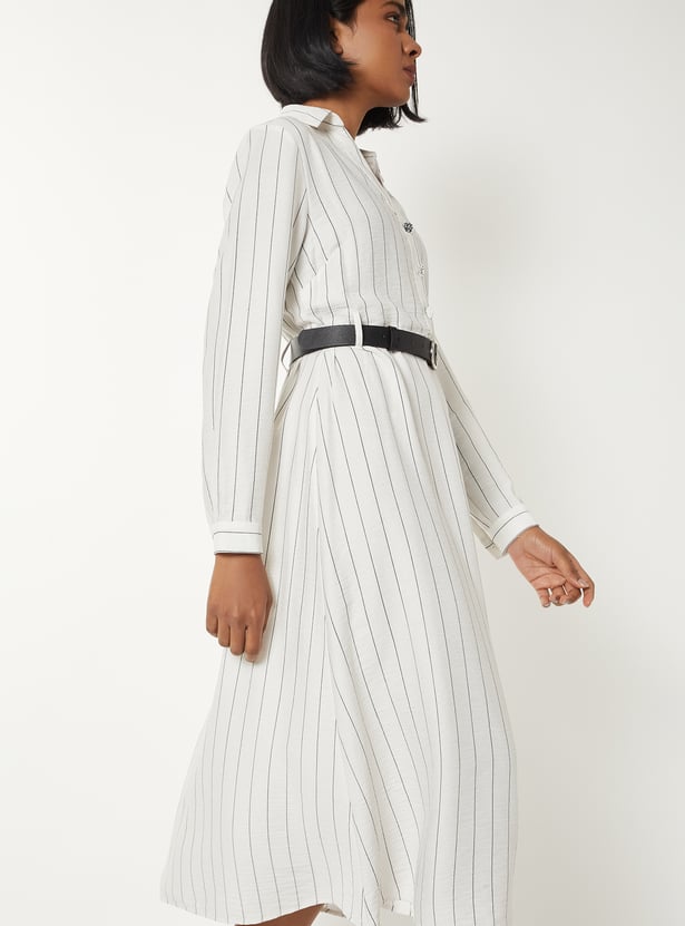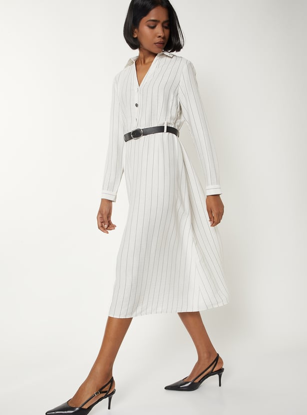 Women Striped Belted Dress