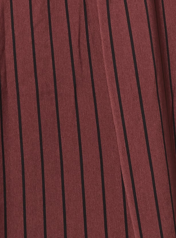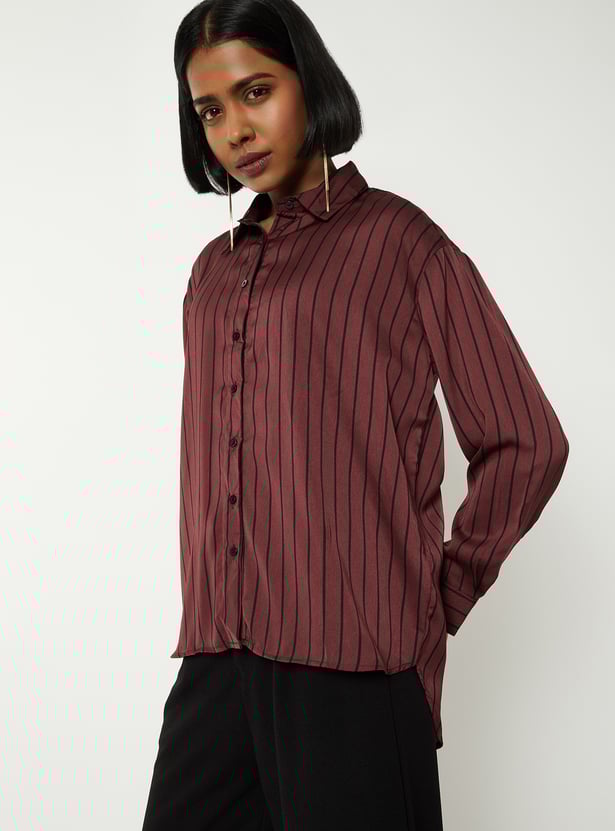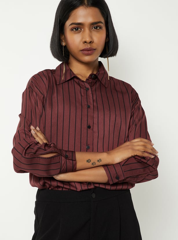 Step out in classic style with this striped regular fit formal shirt. Featuring a spread collar, button placket, full sleeves, and button cuffs, it’s perfect for a polished look.