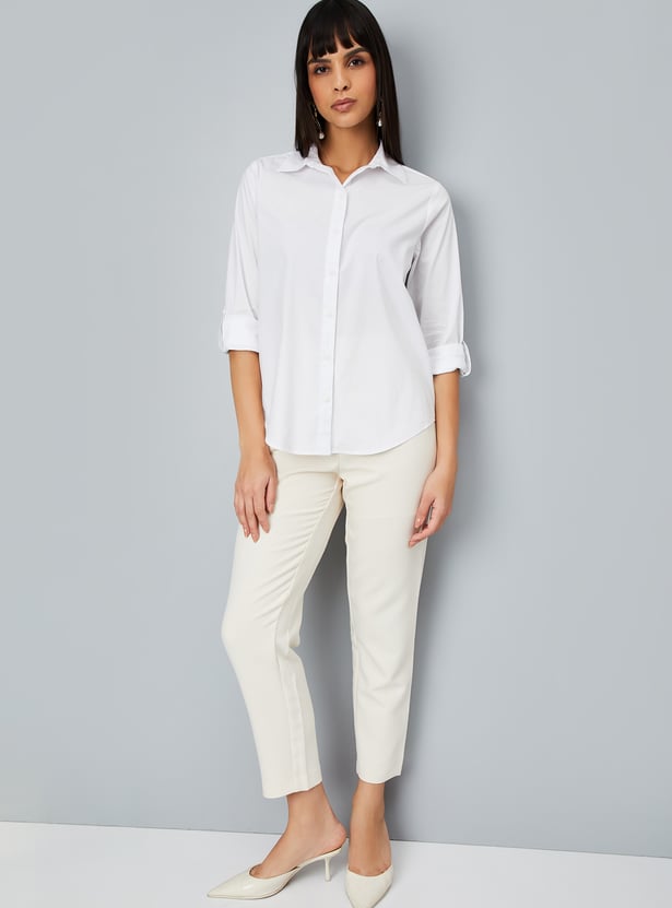 Add a classic touch to your wardrobe with this striped regular fit shirt. It features a spread collar, button placket, and full sleeves with button cuffs, offering a sharp and polished look. Ideal for both casual and semi-formal occasions.