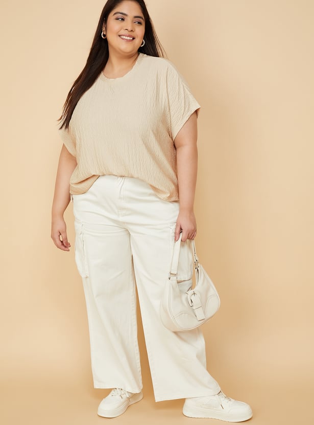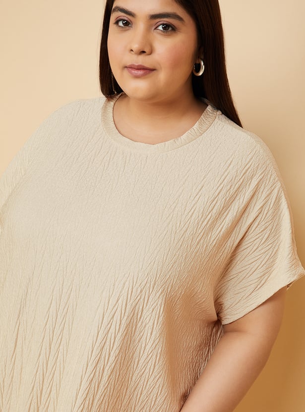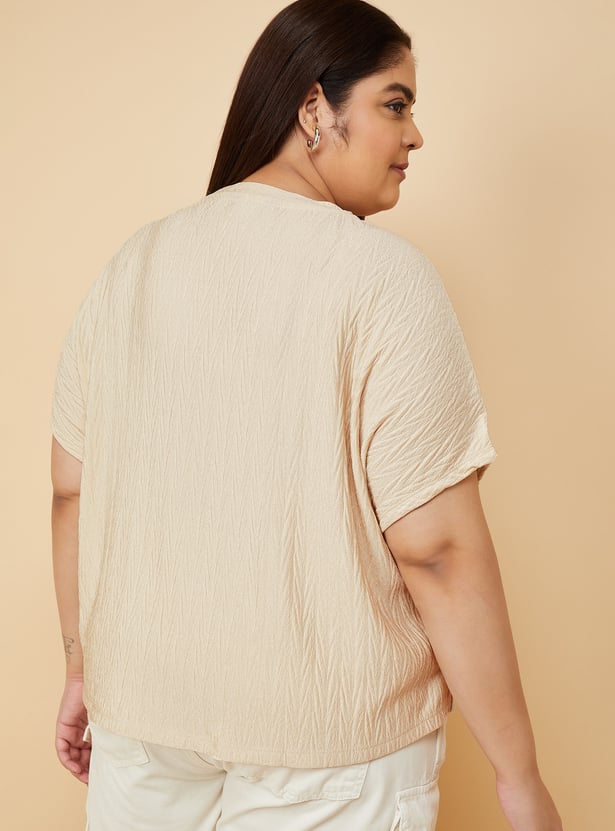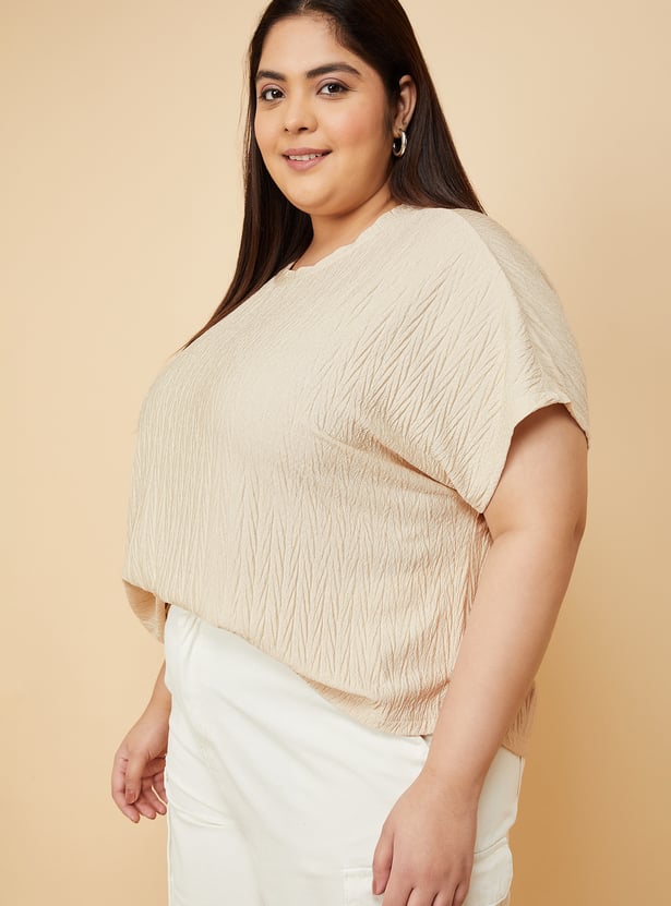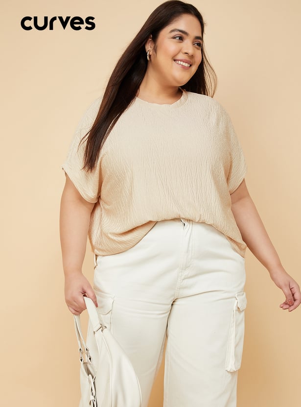 This textured top adds a refined touch to your everyday style. Featuring a classic round neck and extended sleeves, it offers a feminine silhouette with subtle detailing—perfect for casual outings or dressy occasions. Model Size :