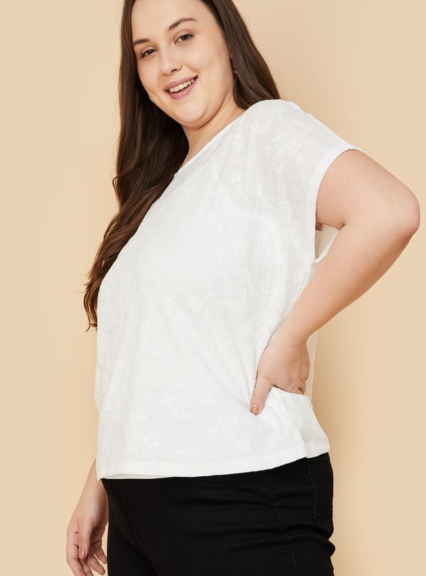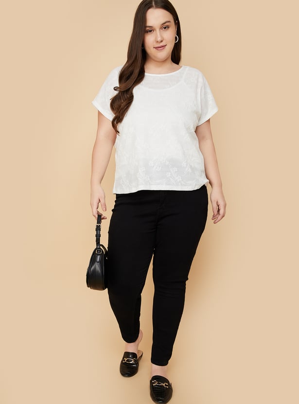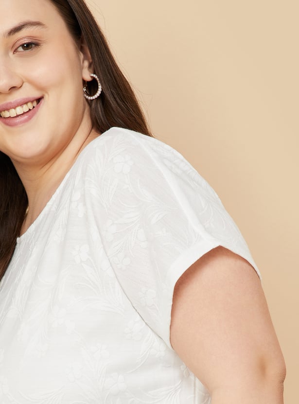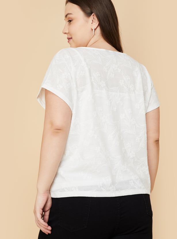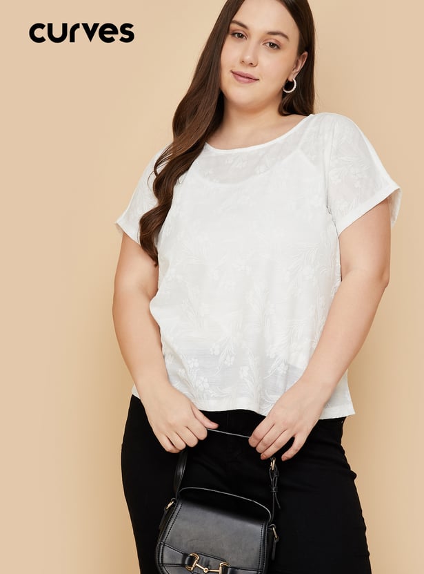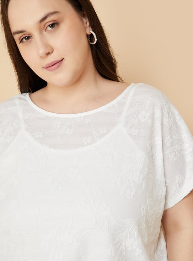 Empower your essence with this floral textured top in your daily collection. Featuring a round neck, and extended half sleeves with a matching camisole to guarantee you feel your best throughout the day.