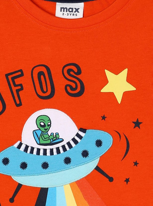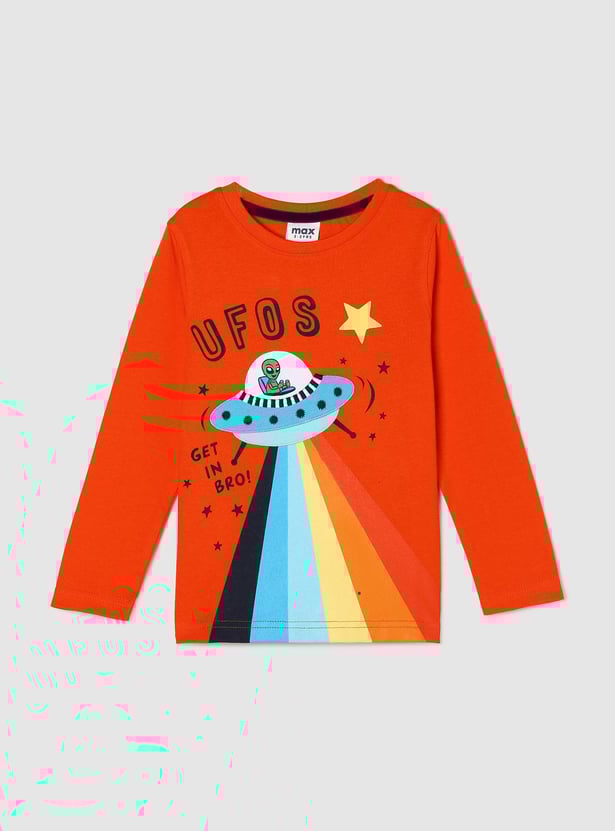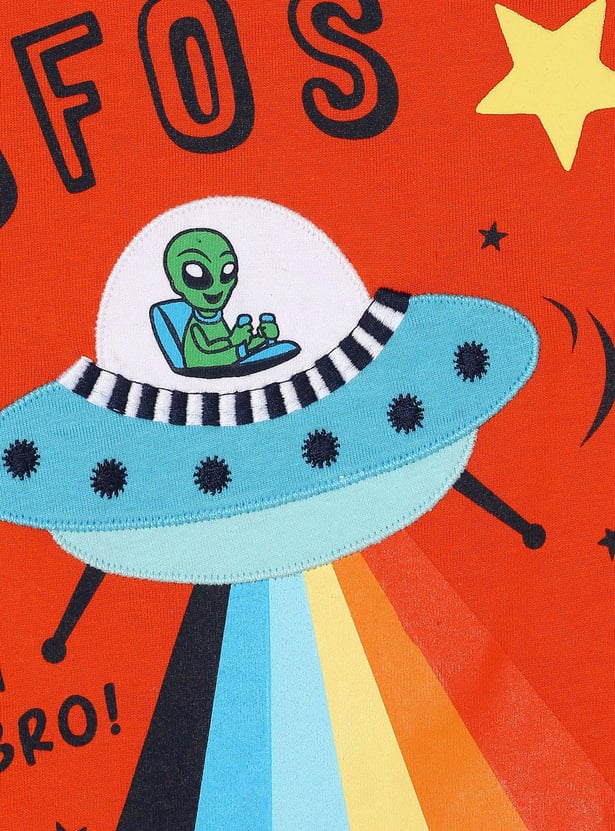 Highlighted with UFO applique and prints, this t-shirt featuring a crew neckline and long sleeves is a wardrobe favourite.