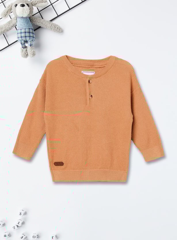 Stay snug in style with these knit sweaters, featuring a round neck, button placket, and full sleeves. Soft and warm, they’re perfect for layering during chilly days.
