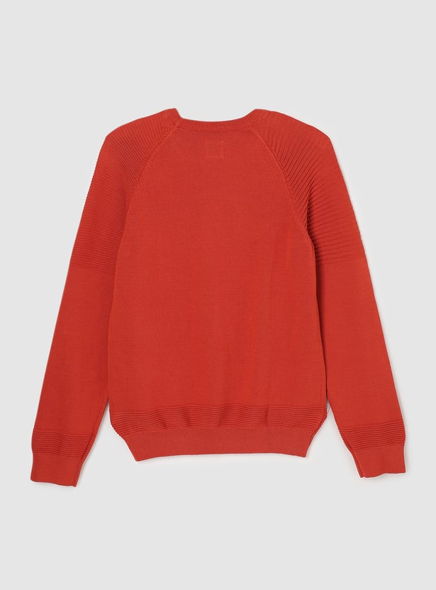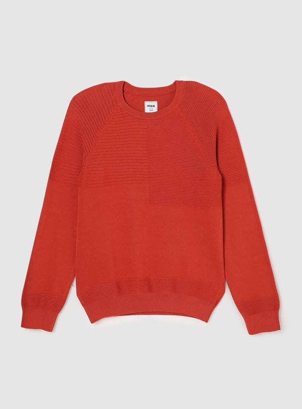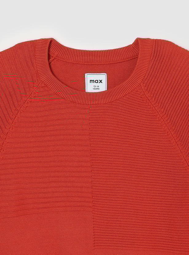 Induce comfort and style into your child's winter wardrobe with this cosy sweater. Featuring a crew neckline, ribbed texture, and raglan full sleeves, it’s perfect for keeping them warm and fashionable all season long.