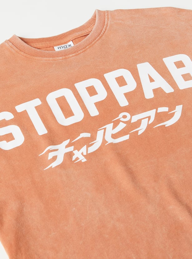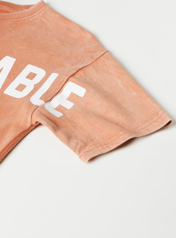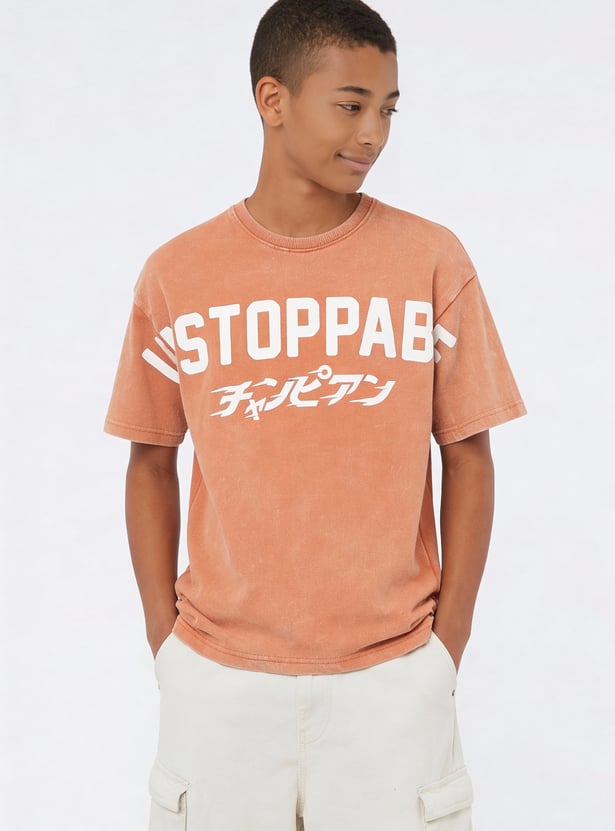 Effortless and versatile, this printed oversized T-shirt is a wardrobe staple. Designed with a classic crew neck and half sleeves, it combines everyday comfort with a touch of personality through its print.
