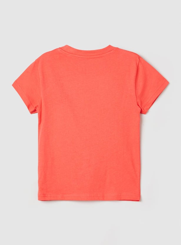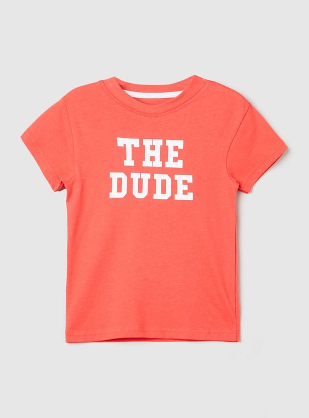 Amp up your child's style quotient with this printed t-shirt which has a crew neckline and half sleeves.