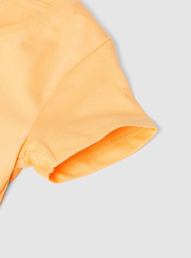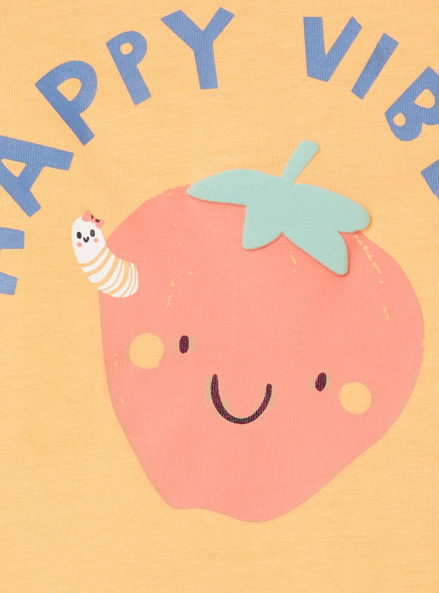 Add a splash of fun to your kid's casual wardrobe with this playful T-shirt. Featuring a vibrant graphic print, a classic round neck, and cool half sleeves, this tee is perfect for adventurous days and endless play.