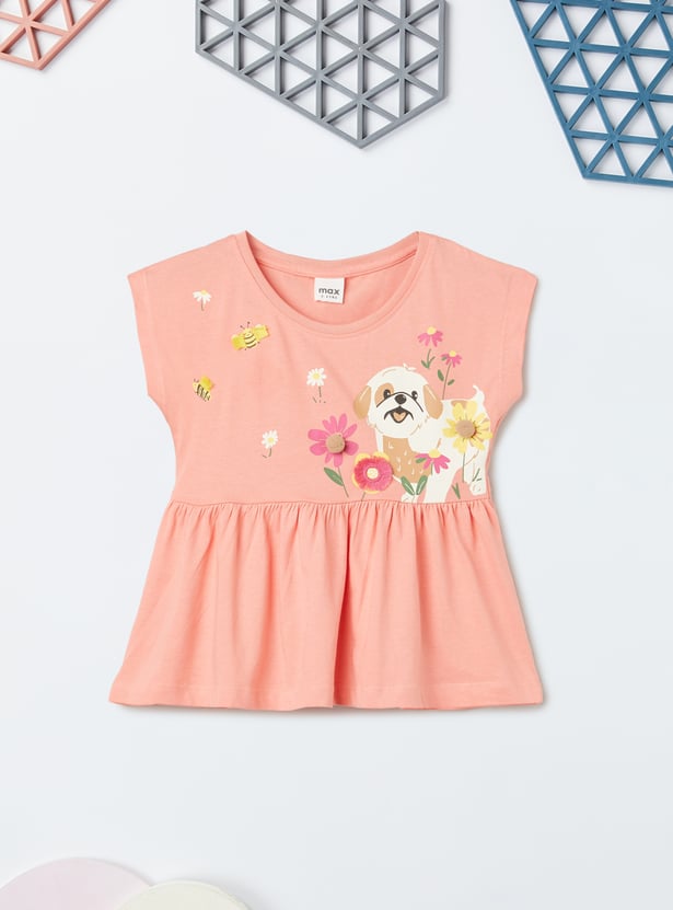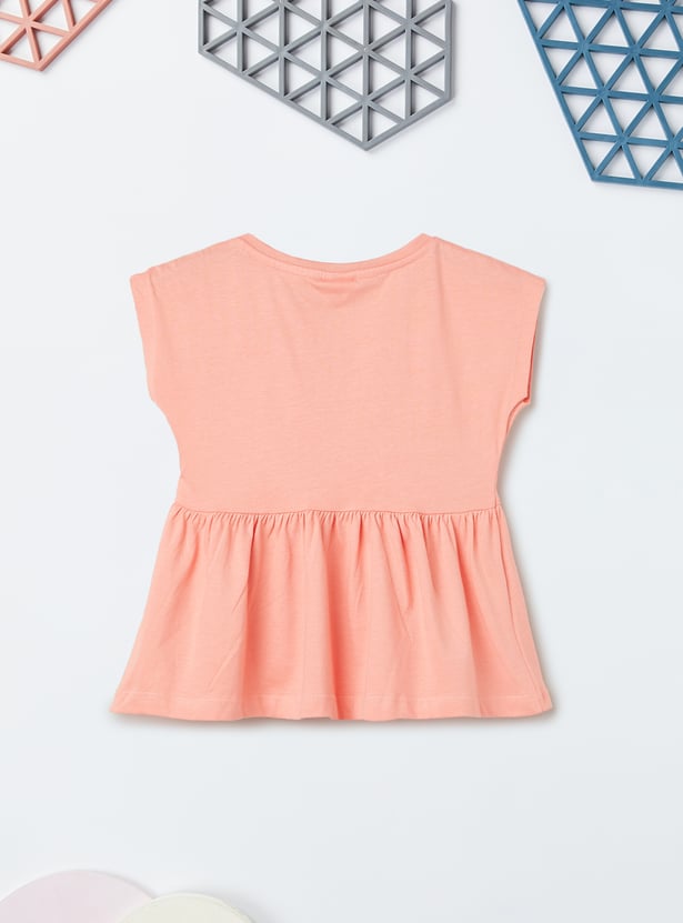 Let your little one bloom with style in this set. the top has a round neck, a sleeveless design, and a peplum hem. The shorts feature an elasticated waist and a solid-tone finish. The cute print with fringe detailing and pompom detailing brings this set to life.