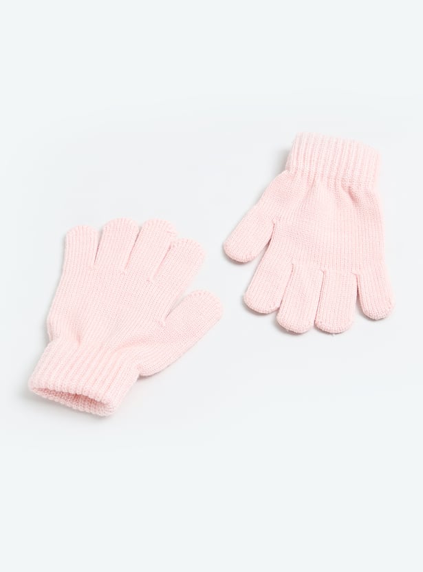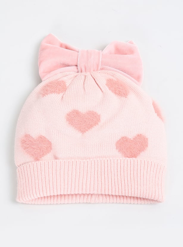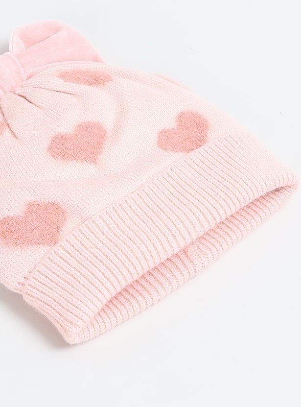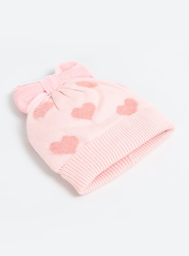 Keep your little one cozy with this heart beanie and mittens set featuring adorable heart detailing and a snug knit design.