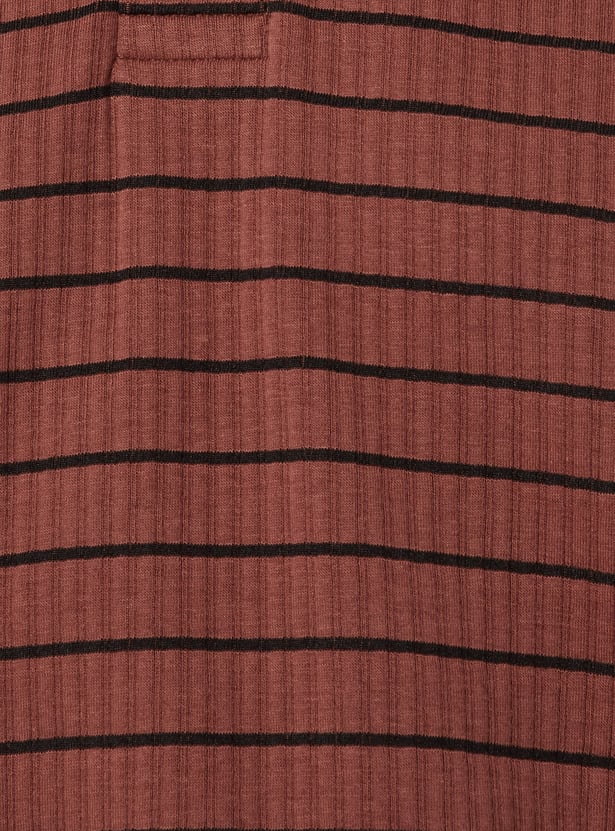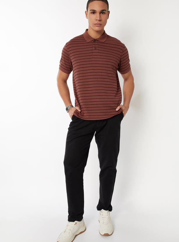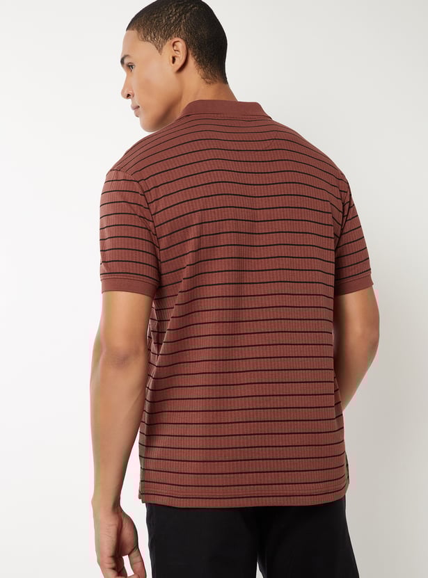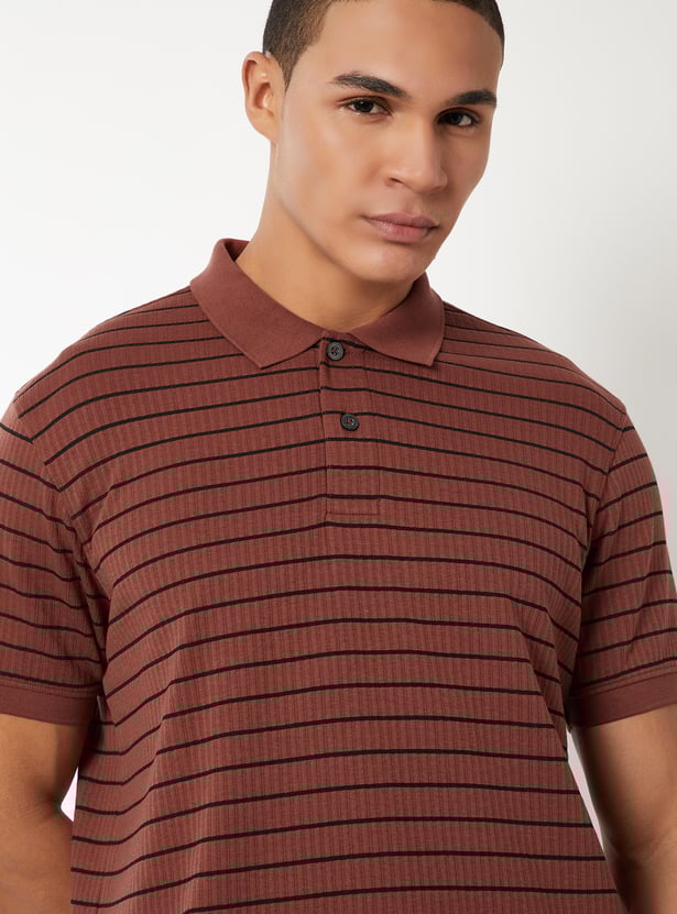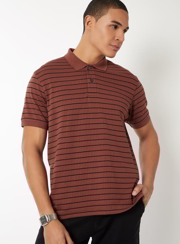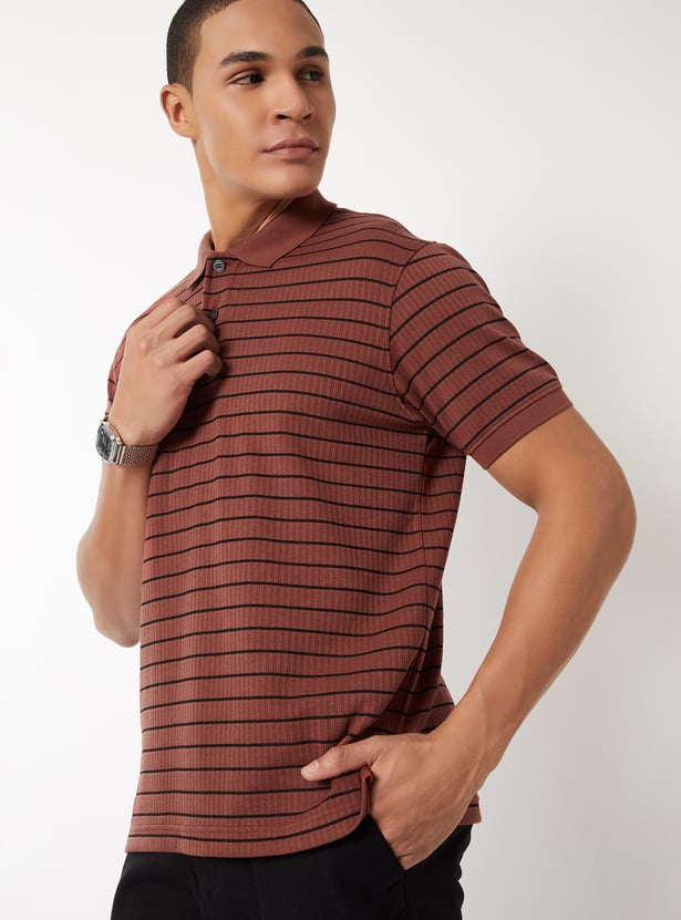 Bring a timeless touch to your casual style with this striped polo T-shirt, featuring a classic polo collar, half button placket, and comfortable half sleeves. The striped pattern adds a sporty vibe to this everyday essential.