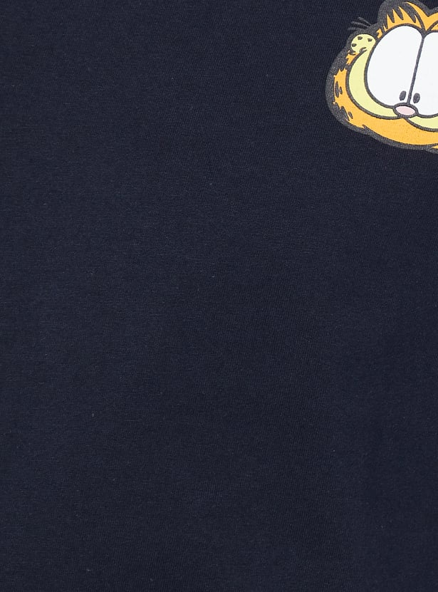 This T-shirt features a playful Garfield print for a fun addition to your wardrobe. The crew neckline and half sleeves provide a classic fit and comfort. The printed design adds a touch of vibrant character, making it a standout piece for casual outings.