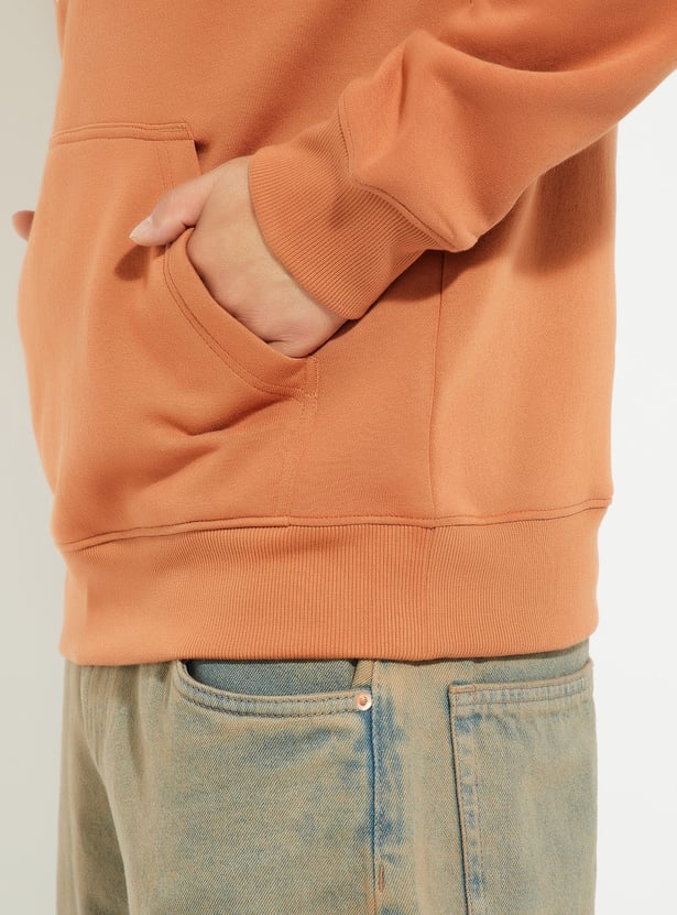 Stay cozy in this printed sweatshirt featuring a hooded neck, zip closure, kangaroo pocket, and full sleeves for a relaxed fit. Designed with a roomy silhouette, it ensures all-day comfort and effortless style.