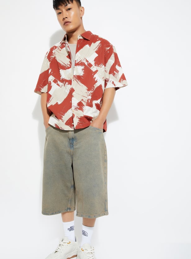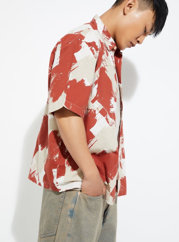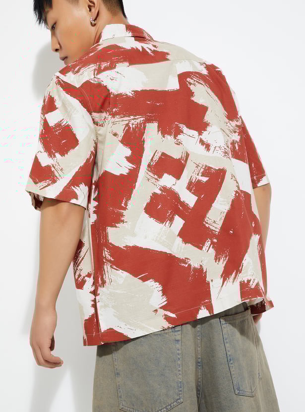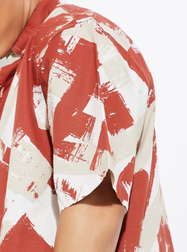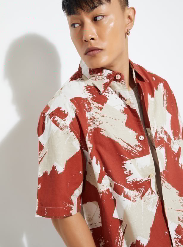 Make a bold style statement with this printed oversized shirt, featuring a spread collar, button placket, and relaxed half sleeves for all-day comfort and flair.