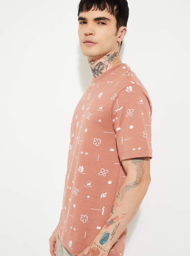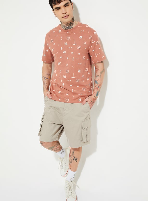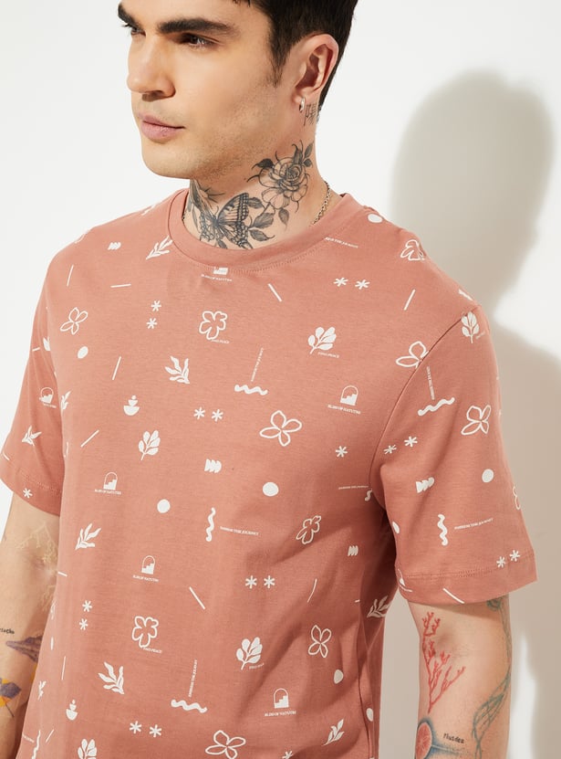 Men’s all-over printed T-shirt designed with a classic crew neck and comfortable half sleeves for regular wear. The clean silhouette makes it suitable for casual outings, off-duty plans, and relaxed everyday styling.