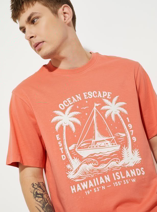 Keep it casual and trendy with this printed t-shirt, designed for everyday comfort. Featuring a classic crew neck and half sleeves, it offers a relaxed fit with eye-catching prints, making it a versatile staple for your wardrobe.