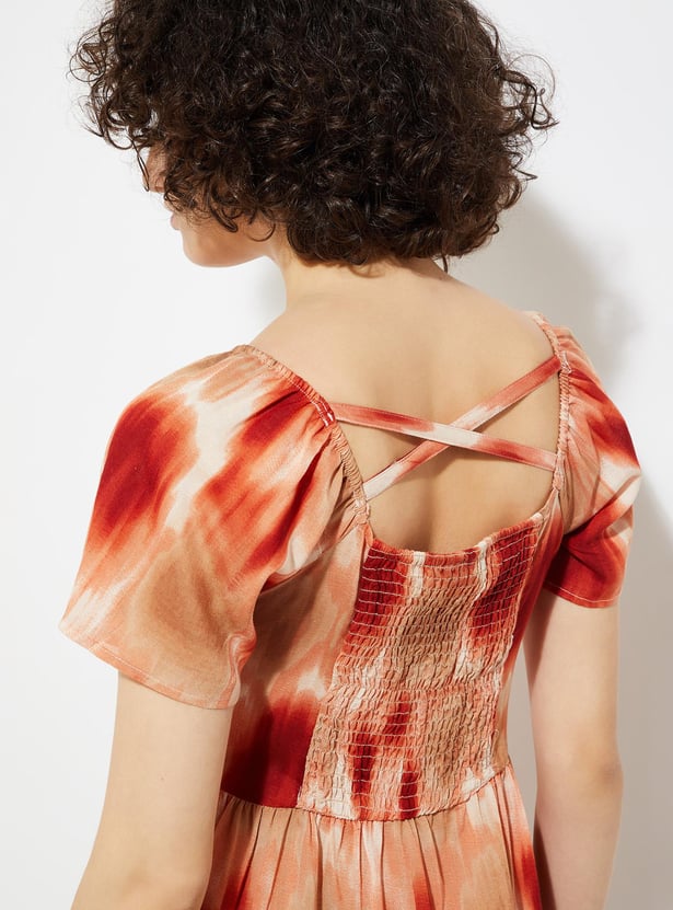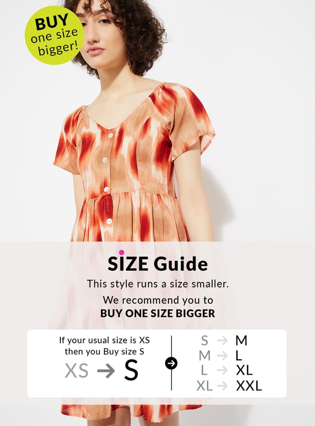 Unleash your fashion-forward flair with our latest fit-and-flare dress! Adorned with eye-catching prints from top to bottom, this dress is the epitome of modern elegance. With a flattering V-neck, trendy half sleeves, and a smocked back for the perfect fit, it's the ultimate blend of style and comfort.