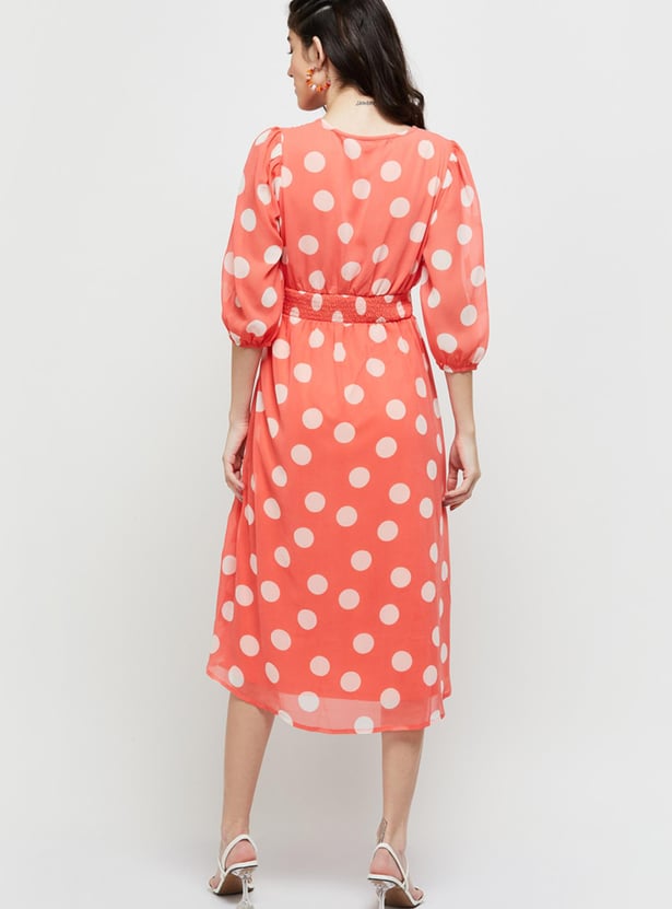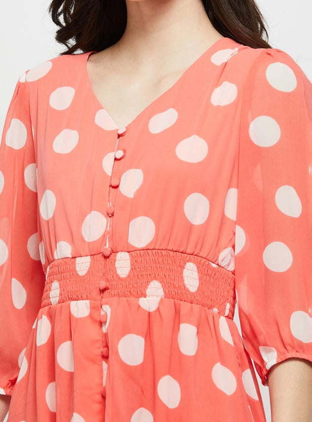 Women Polka Dots Printed A-line Dress with V-Neckline