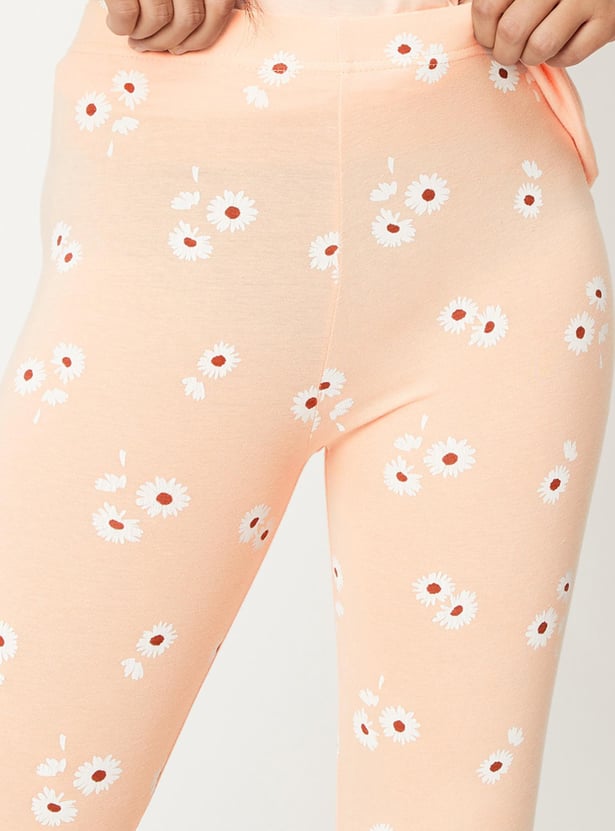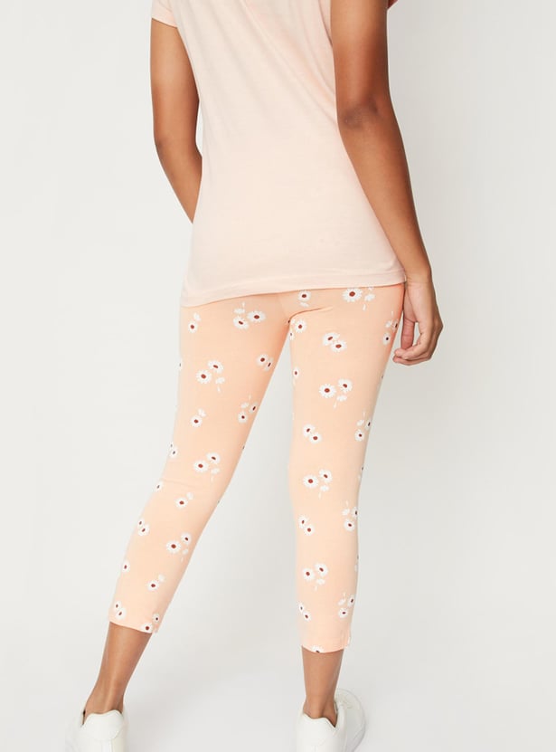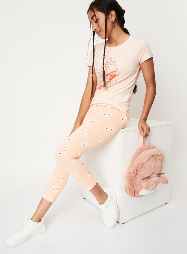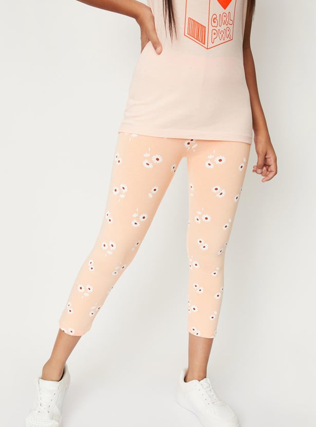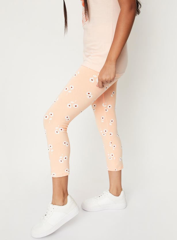 Girls Floral Printed 3/4th Leggings