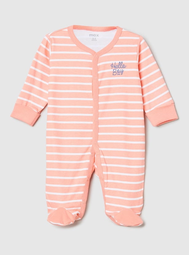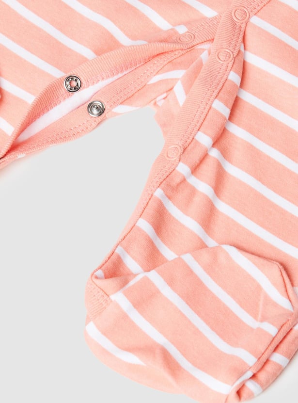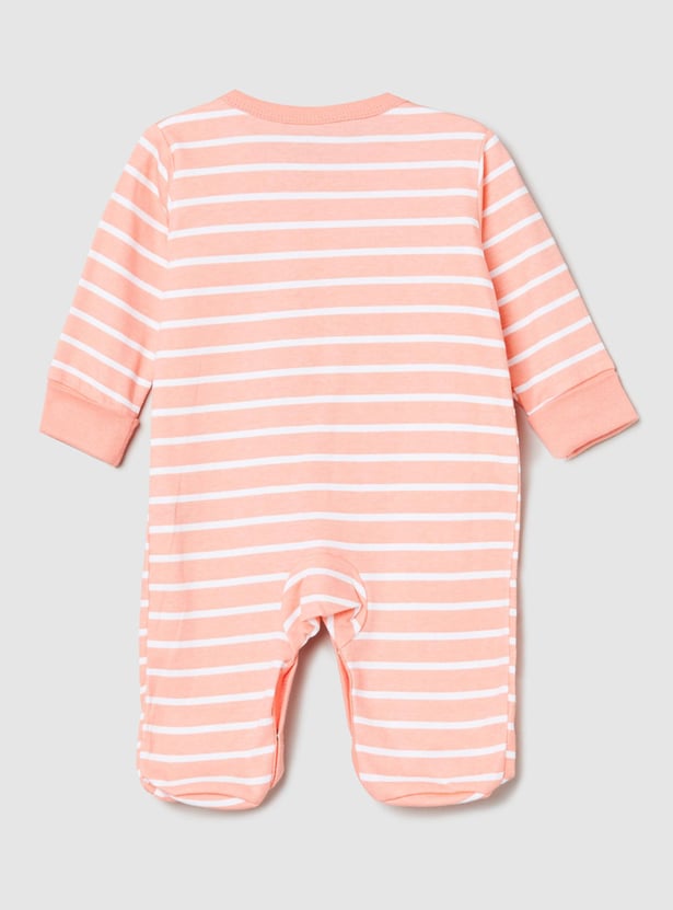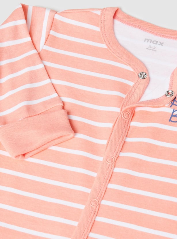 Tailored with an anti-bacterial finish on the fabric, this striped sleepsuit is designed with full sleeves for your growing baby. It also has a font and wrap openings for easy diaper changes.