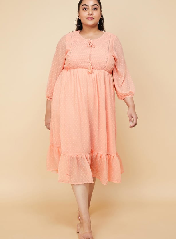 Women Dobby Woven Midi Dress