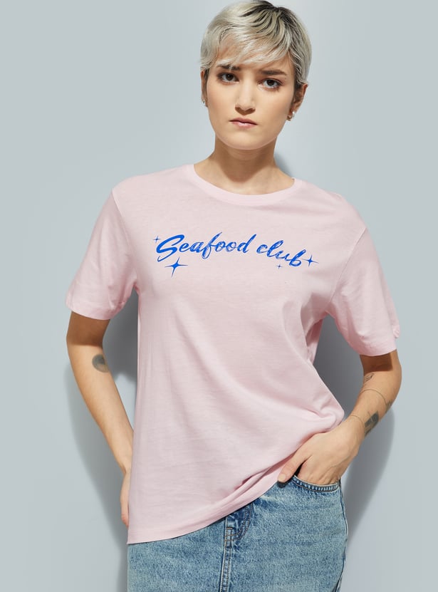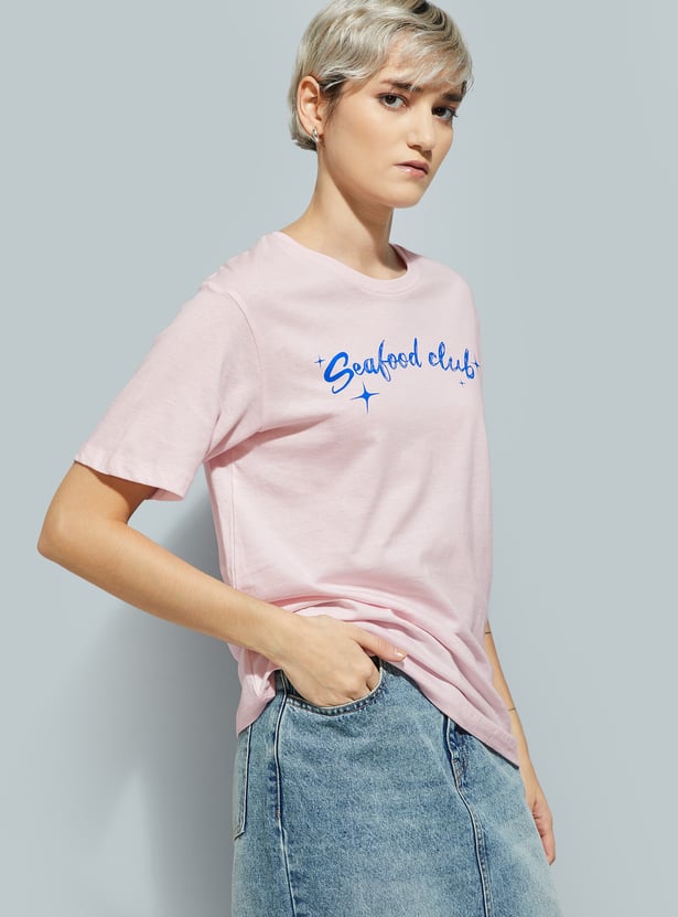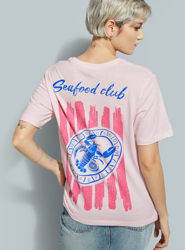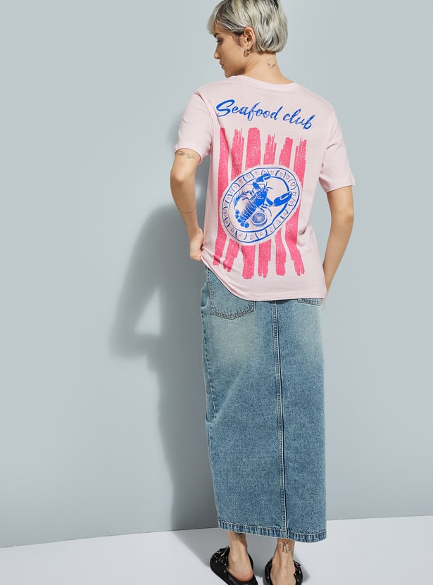 Refresh your casual wardrobe with this back print T-shirt featuring a classic round neck and comfortable half sleeves. Designed for a relaxed, roomy fit perfect for everyday wear.
