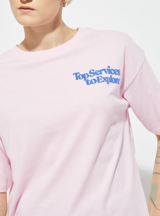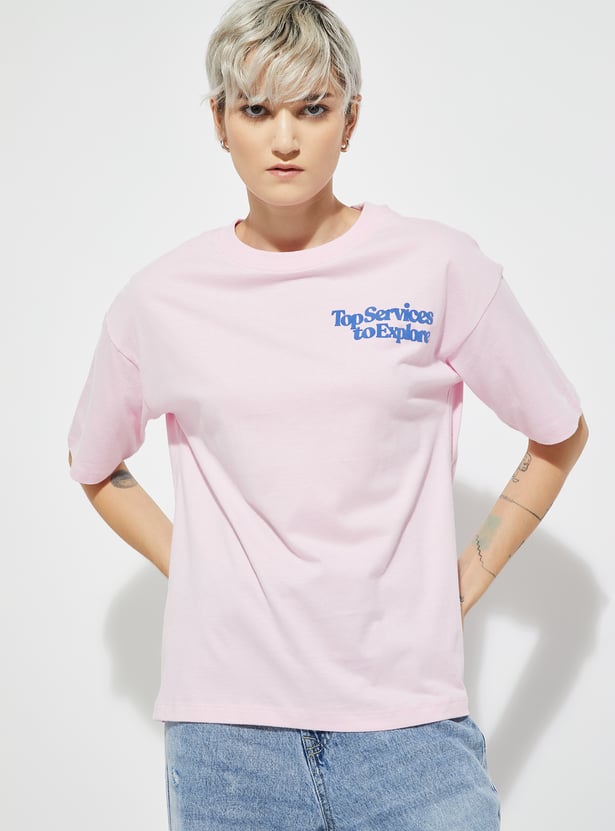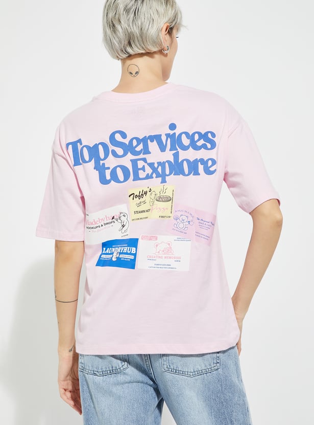 Refresh your casual wardrobe with this back print T-shirt featuring a classic round neck and comfortable half sleeves. Designed for a relaxed, roomy fit perfect for everyday wear.