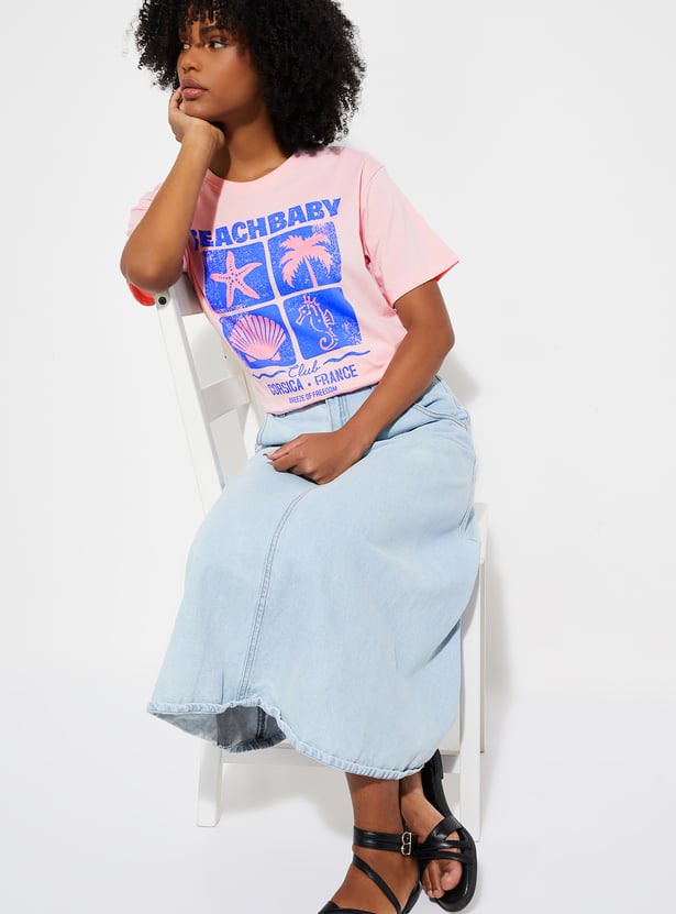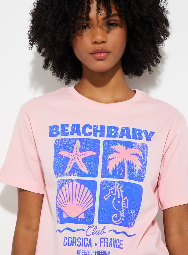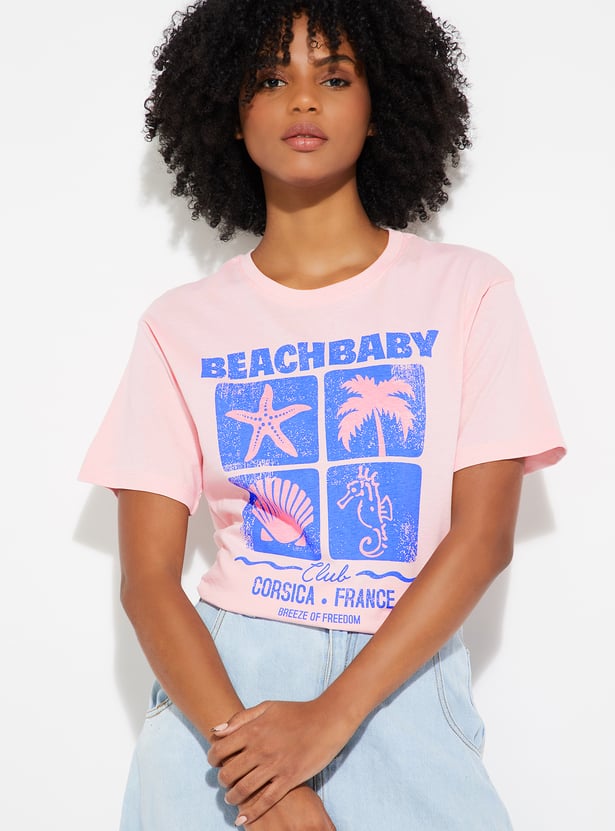 Stay effortlessly stylish in this graphic printed T‑shirt, designed in a relaxed fit for all‑day comfort. Featuring a classic round neck and half sleeves, this versatile tee blends casual ease with a trendy edge, making it a go‑to for everyday wear.