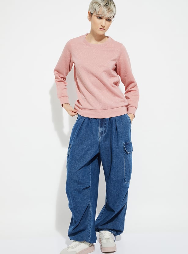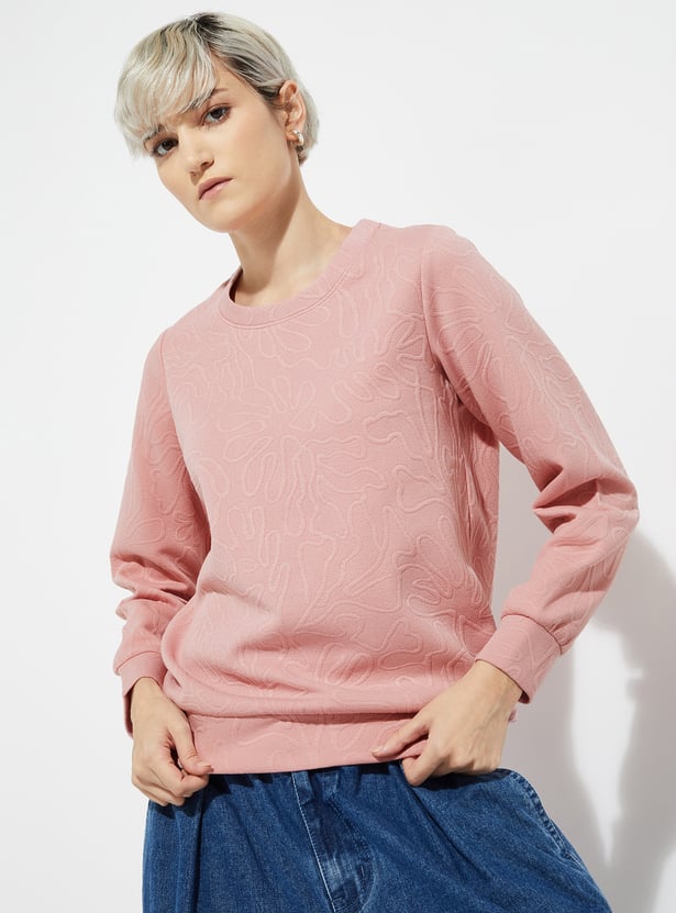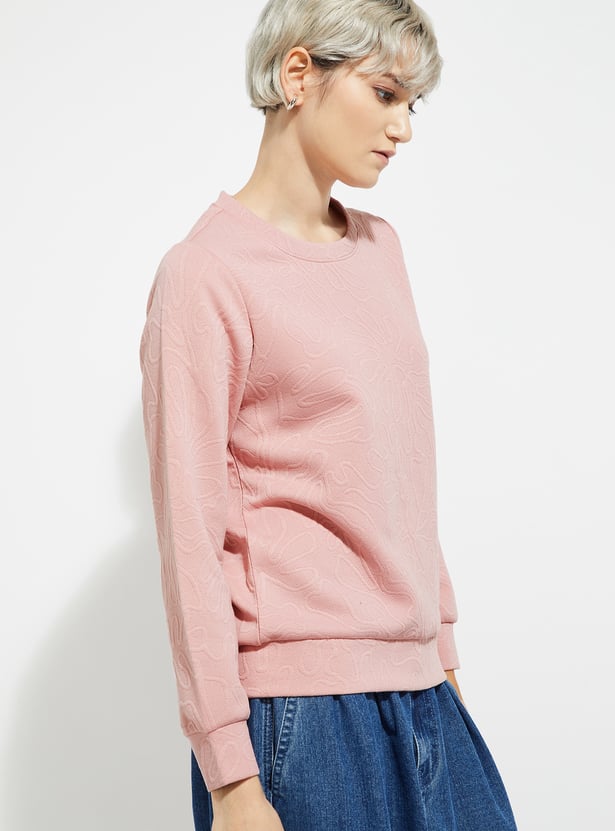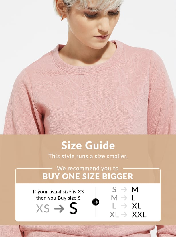 Refresh your cozy essentials with this patterned sweatshirt featuring a classic round neck, full sleeves, and a comfortable ribbed hem. Soft and stylish, it’s perfect for everyday wear. Model Size :