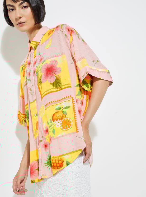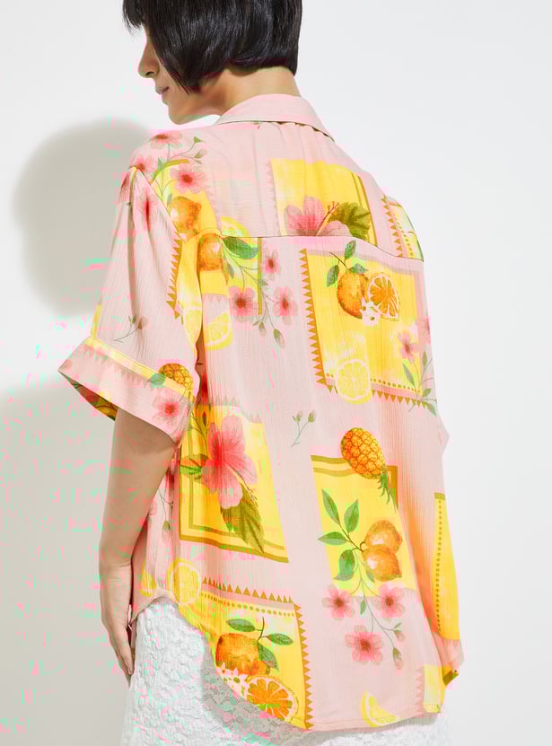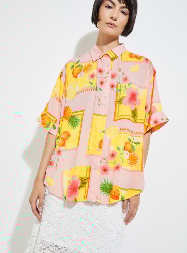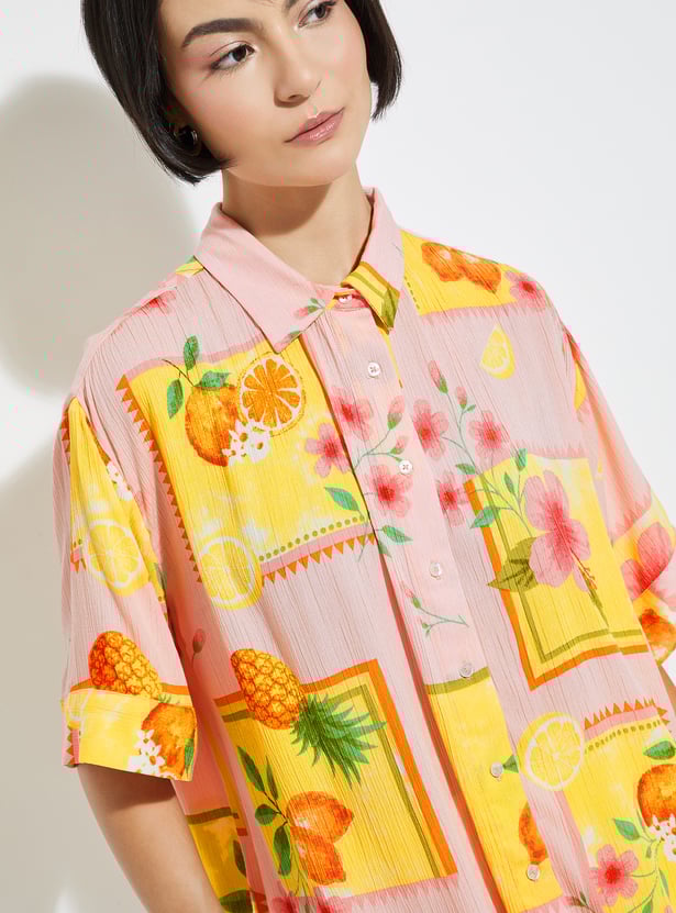 This printed shirt adds depth and style to your wardrobe with its spread collar, button placket, and half sleeves. The subtle texture gives it a modern edge while keeping it versatile for any occasion.