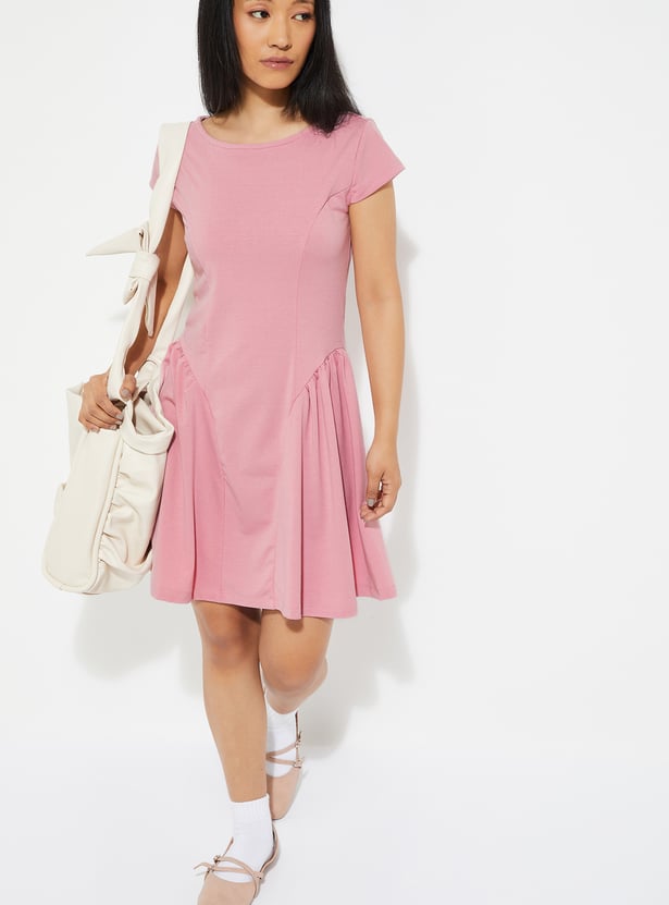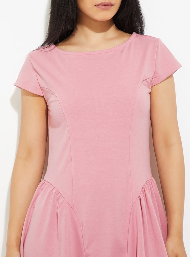 Effortlessly chic and versatile, this solid A-line dress is designed with a classic round neck and half sleeves for timeless appeal. The subtle side gathers add a touch of elegance and flattering shape, making it perfect for both casual outings and semi-formal occasions.