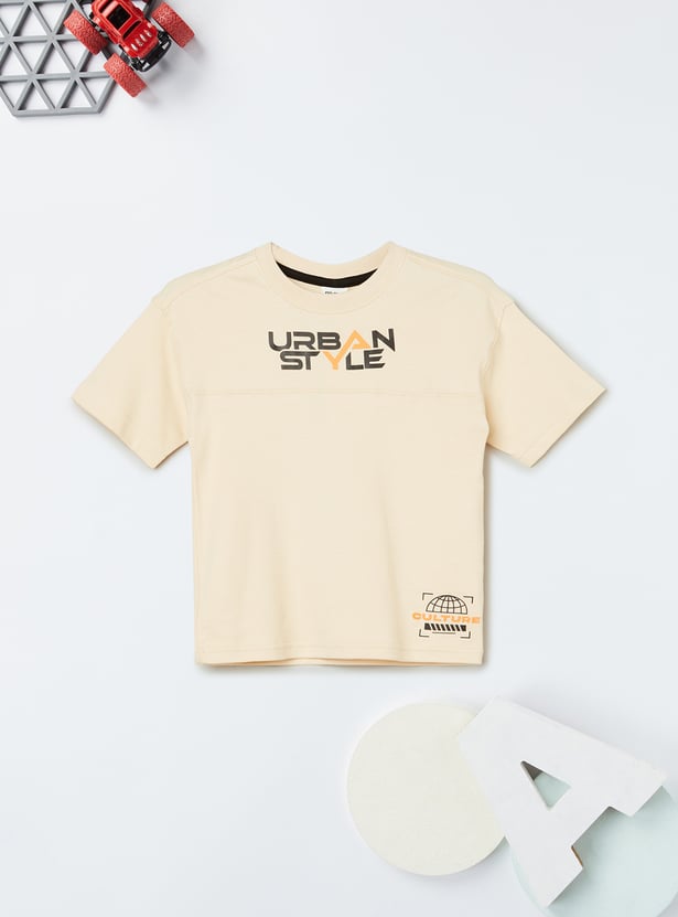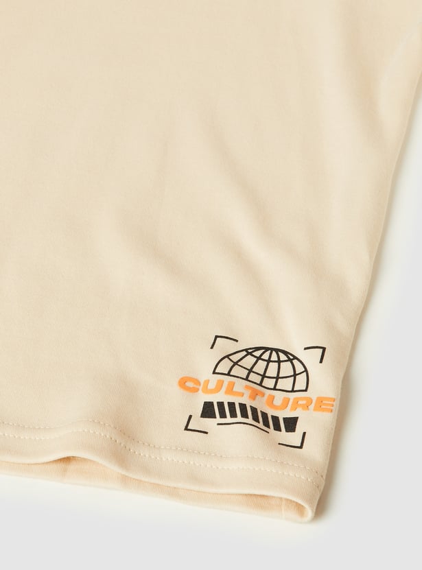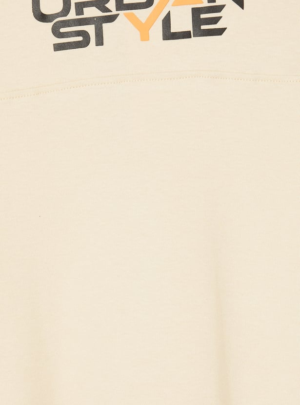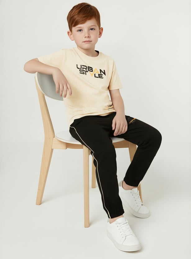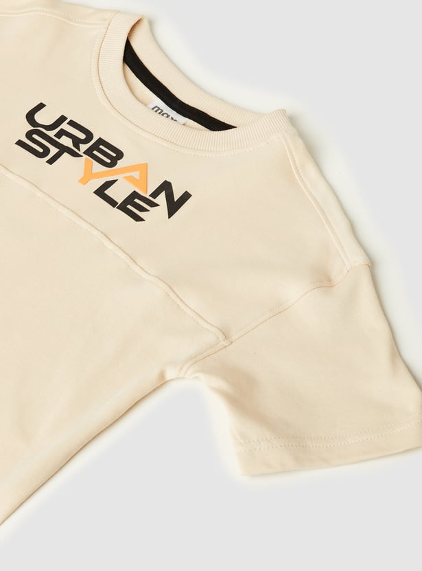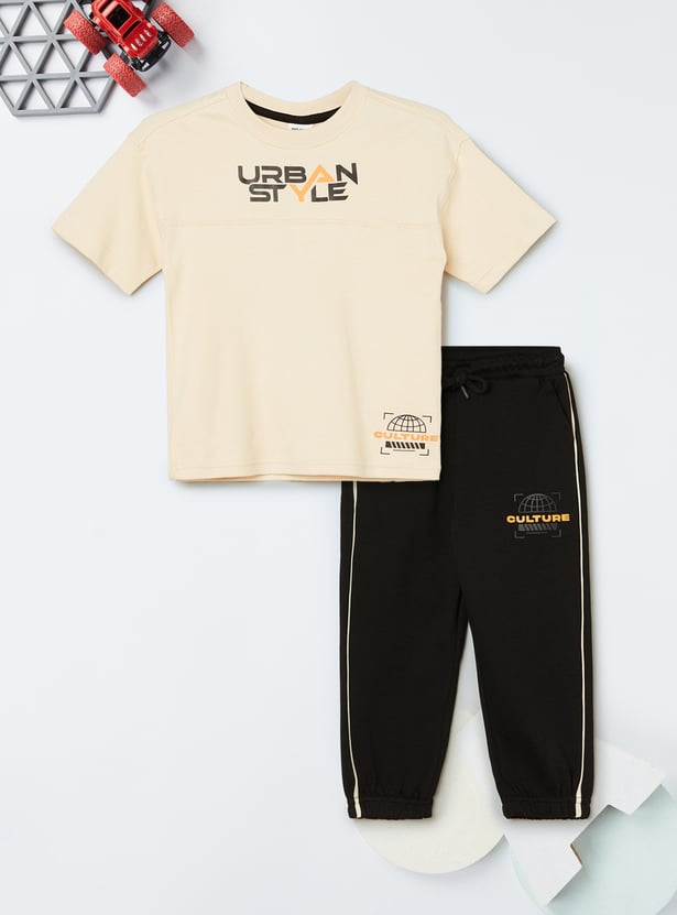 Stay comfy and stylish in this printed joggers set. The sweatshirt features a crew neck and half sleeves, while the matching joggers come with a drawstring closure and pockets for everyday ease.