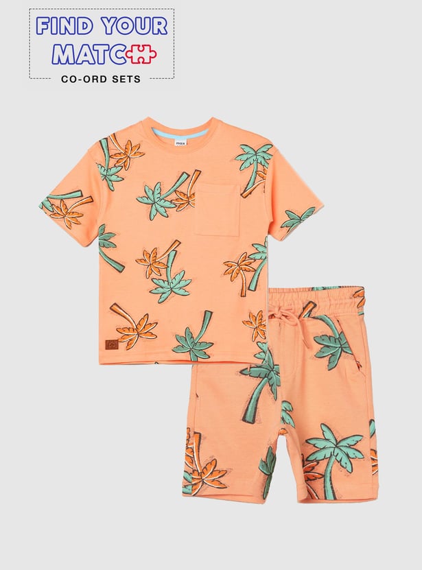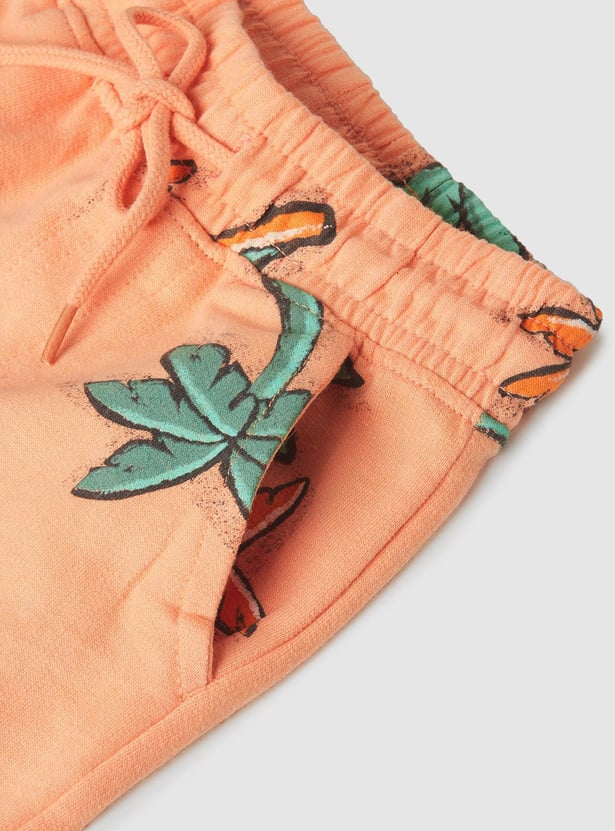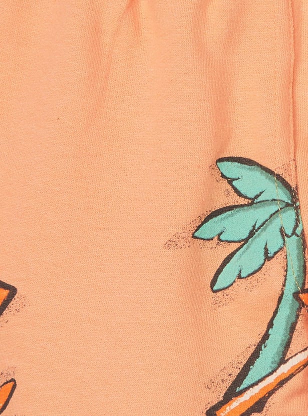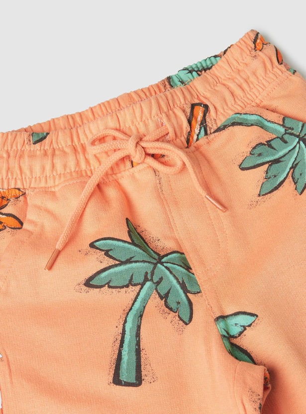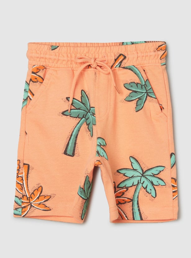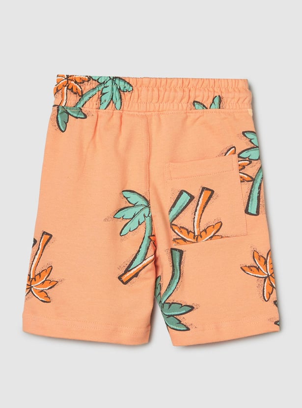 Get him summer-ready with these printed shorts featuring a drawstring waist, side pockets, and a back patch pocket for added convenience and style.