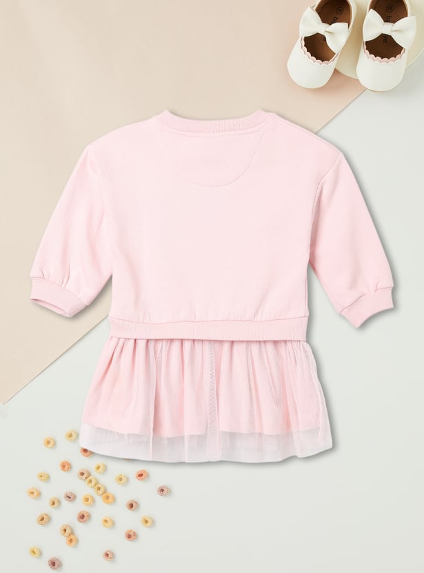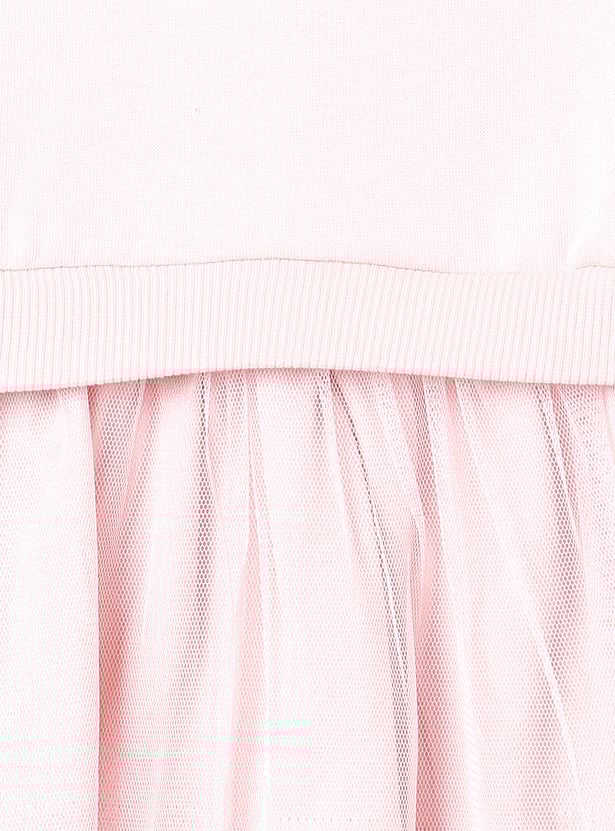 Add a dreamy touch to your wardrobe with this applique tulle dress! Designed with a classic round neck and graceful full sleeves, it blends delicate detailing with an elegant silhouette