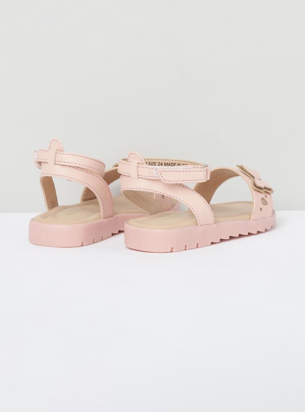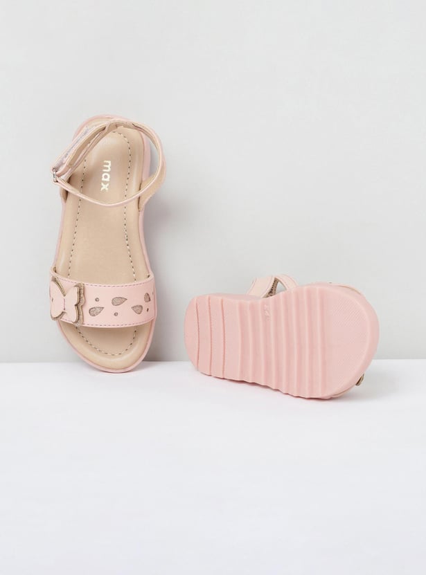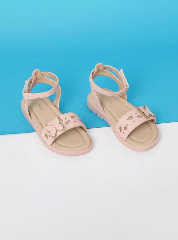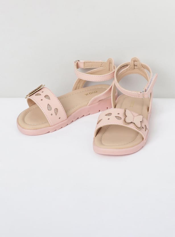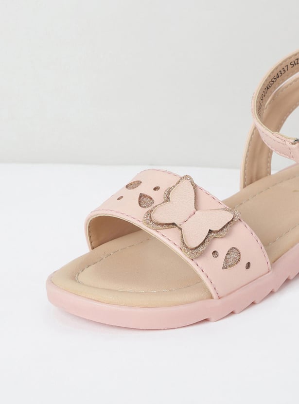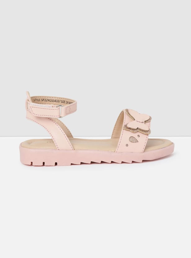 Detailed with a butterfly applique, this pair of sandals comes with open-toe styling and velcro straps. The grooved soles have been added to give maximum grip and comfort to the little one.