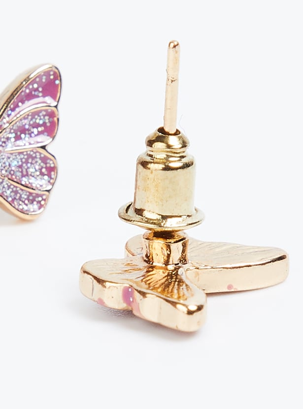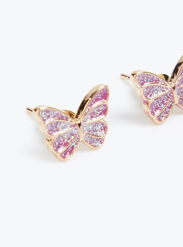 Adorn your child with this charming jewellery set, which includes a necklace featuring a butterfly-shaped pendant and a lobster closure, a pair of stud earrings with post and back closure, and an adjustable ring. Your child will look absolutely adorable wearing this delightful set.
